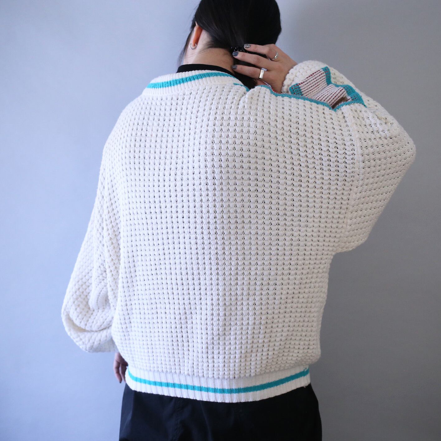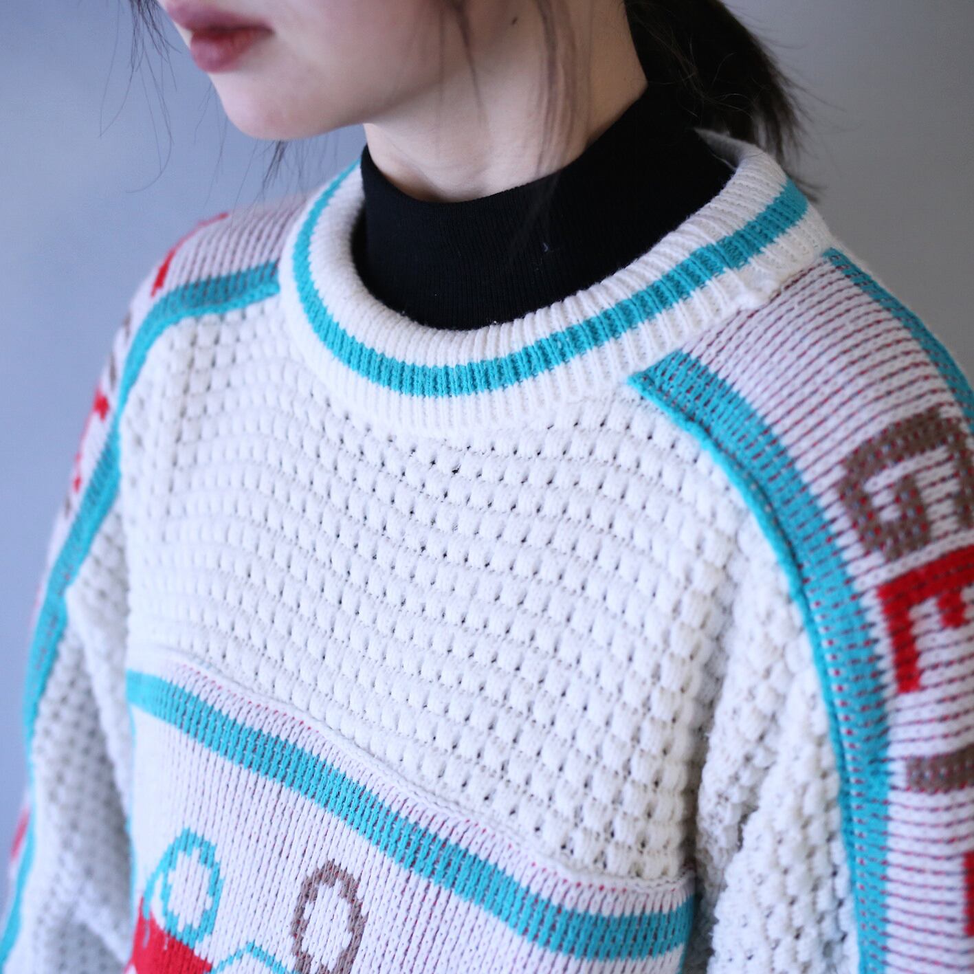 そんなベースに映える"ターコイズブルー×赤×茶"のポップなカラーリングたち、こんな色味のニットは古着ではまず出ません…
