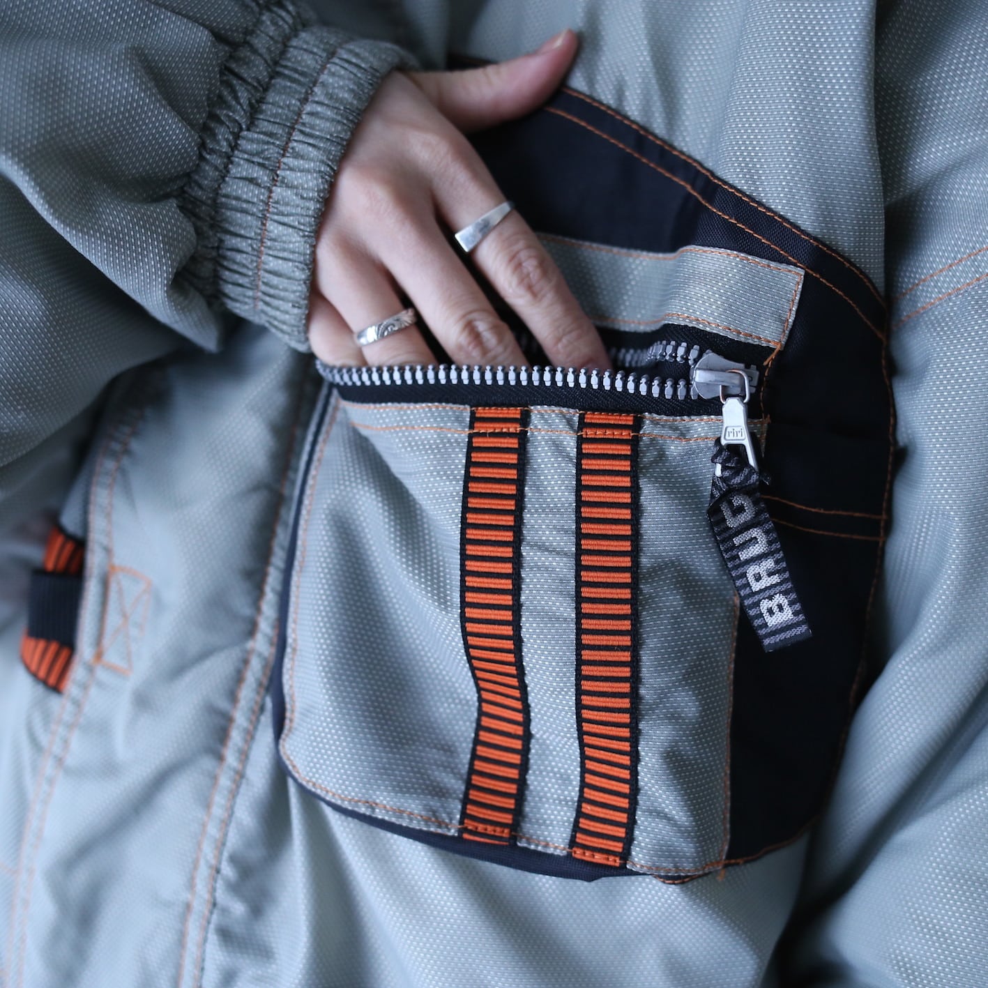 所々に施された黒切り替え、オレンジのステッチワークやテーピング、刺繍が絶妙〜に絡み合い良さを増幅、通常よりも太めにゴツく作られたジップのデザインも最高〜にイケてます