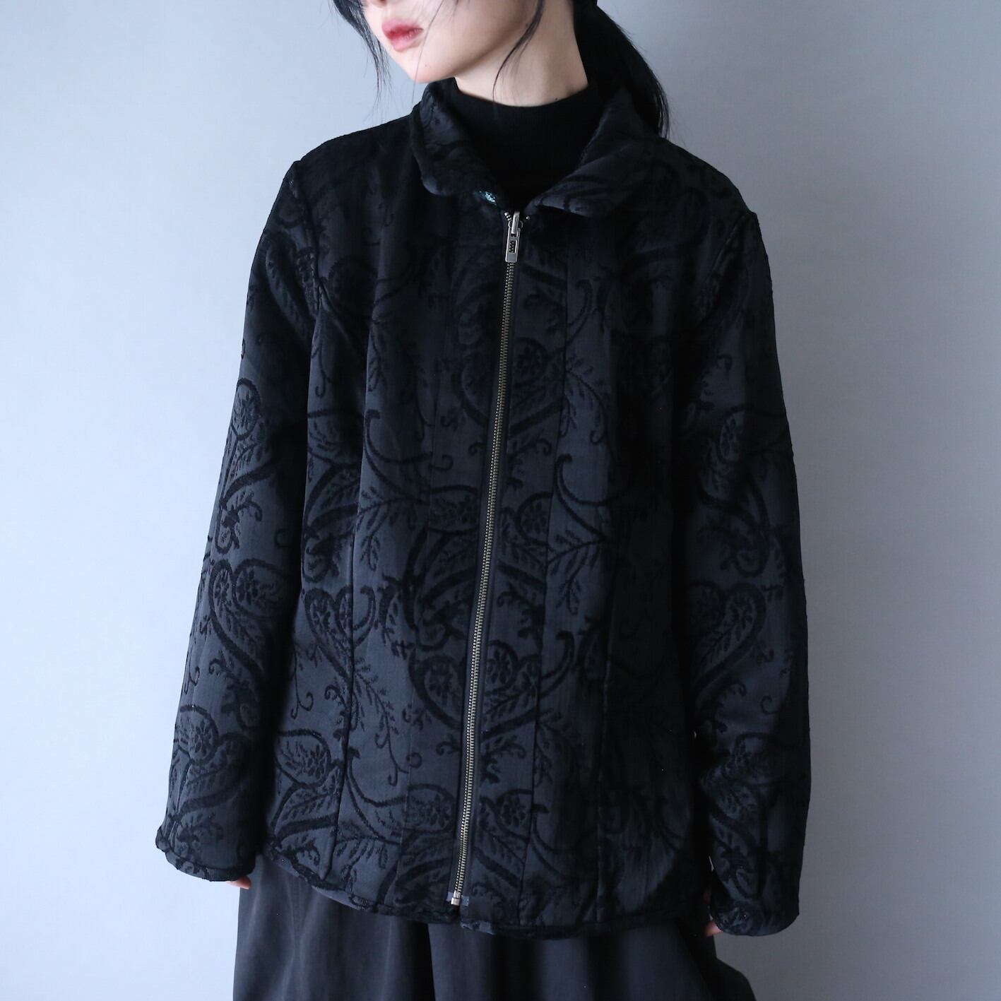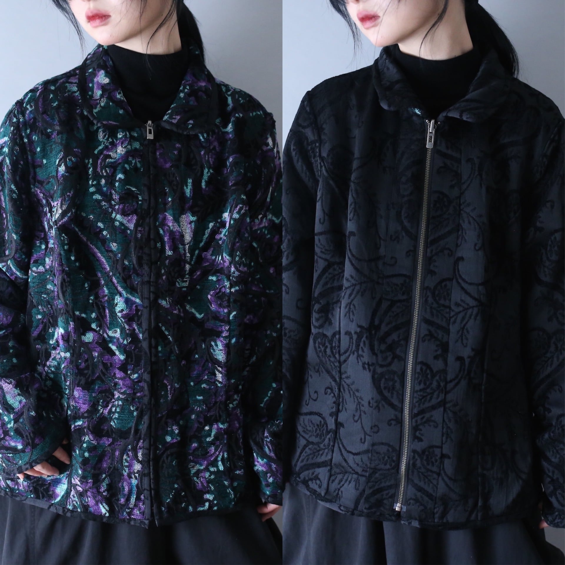 両A面のリバーシブル、シェニール織りから生み出させる繊細な柄がモードでアーティスティックな世界観を放つ極上ジップアップジャケット