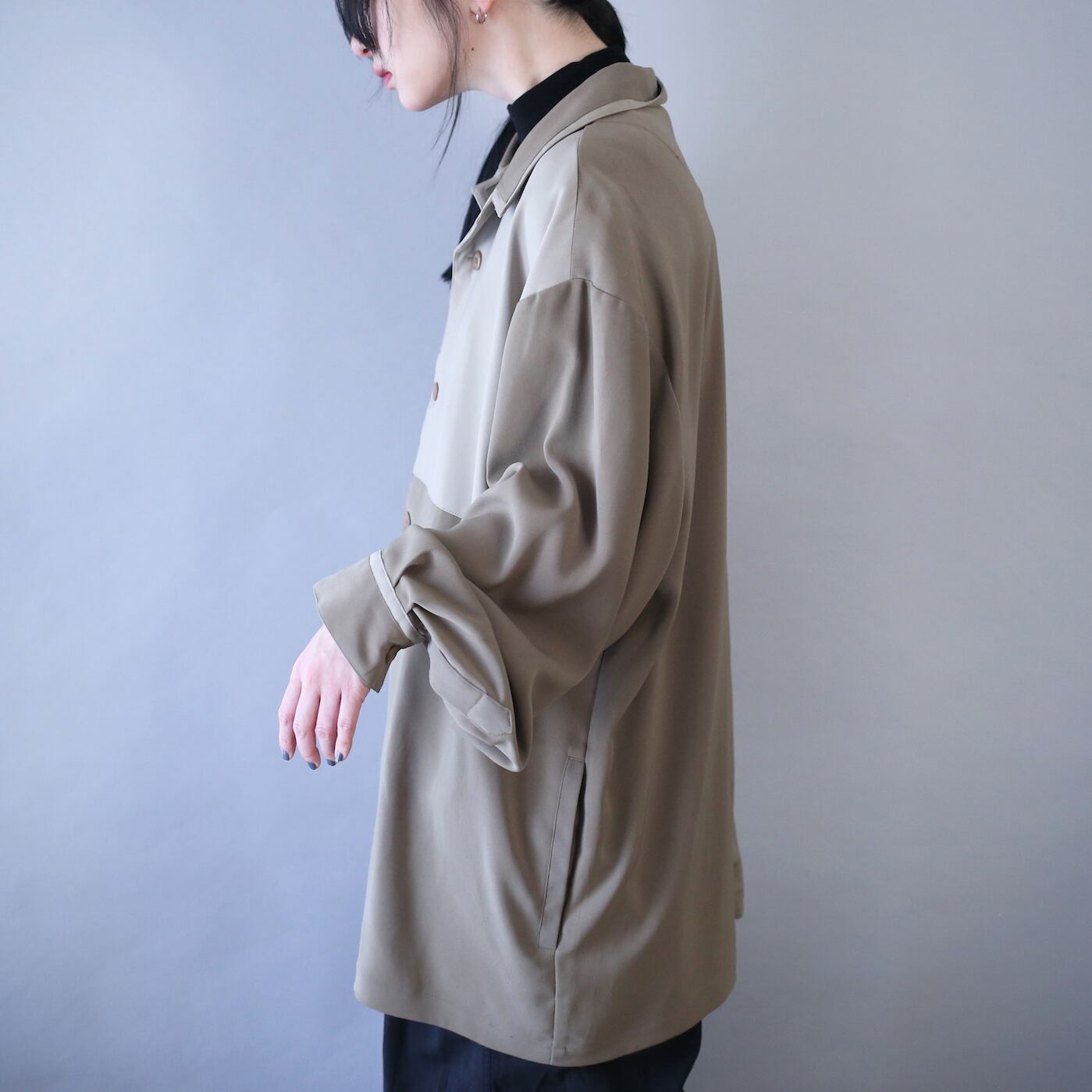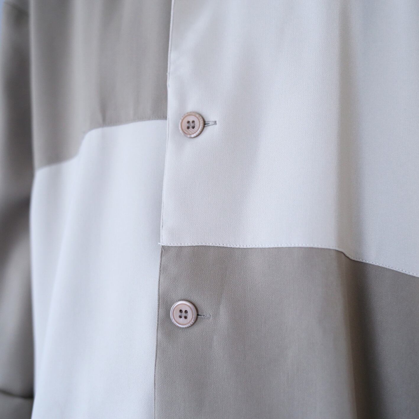 絶妙〜な"くすみカーキ×くすみベージュ"のパネル切り替え、トロットロな生地でドレープ性にも優れたオーバーサイズシャツの登場です◎