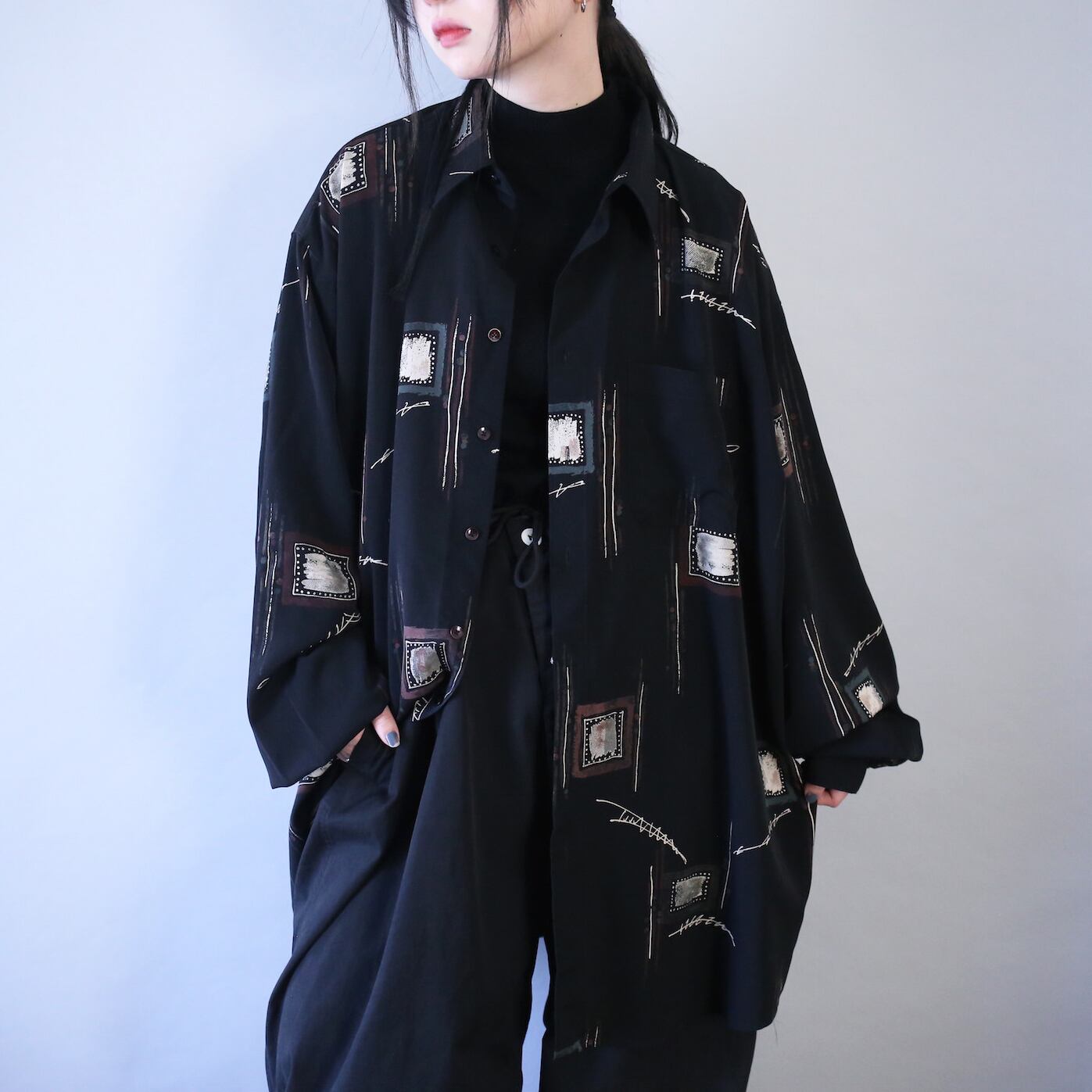 このサイズ感で黒ベース、上質な生地感に加えてアート性豊かな柄のセンス、ここまで好条件を満たしたシャツは他を探してもなかなか出ないシロモノ、この機会に是非ご検討ください