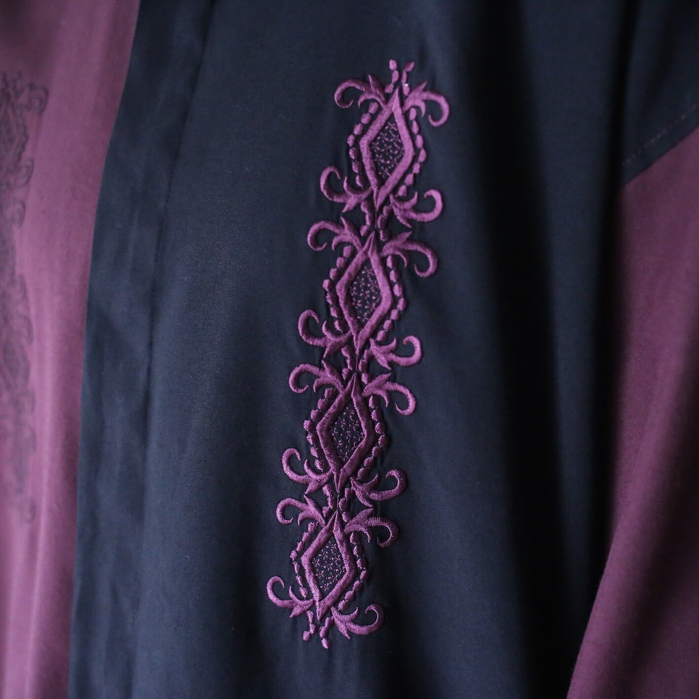 "ブラック×ボルドー"のクラシカルモードな良配色、左右に施された"刺繍"が高級感をグッと高めてくれるデザインシャツの登場です