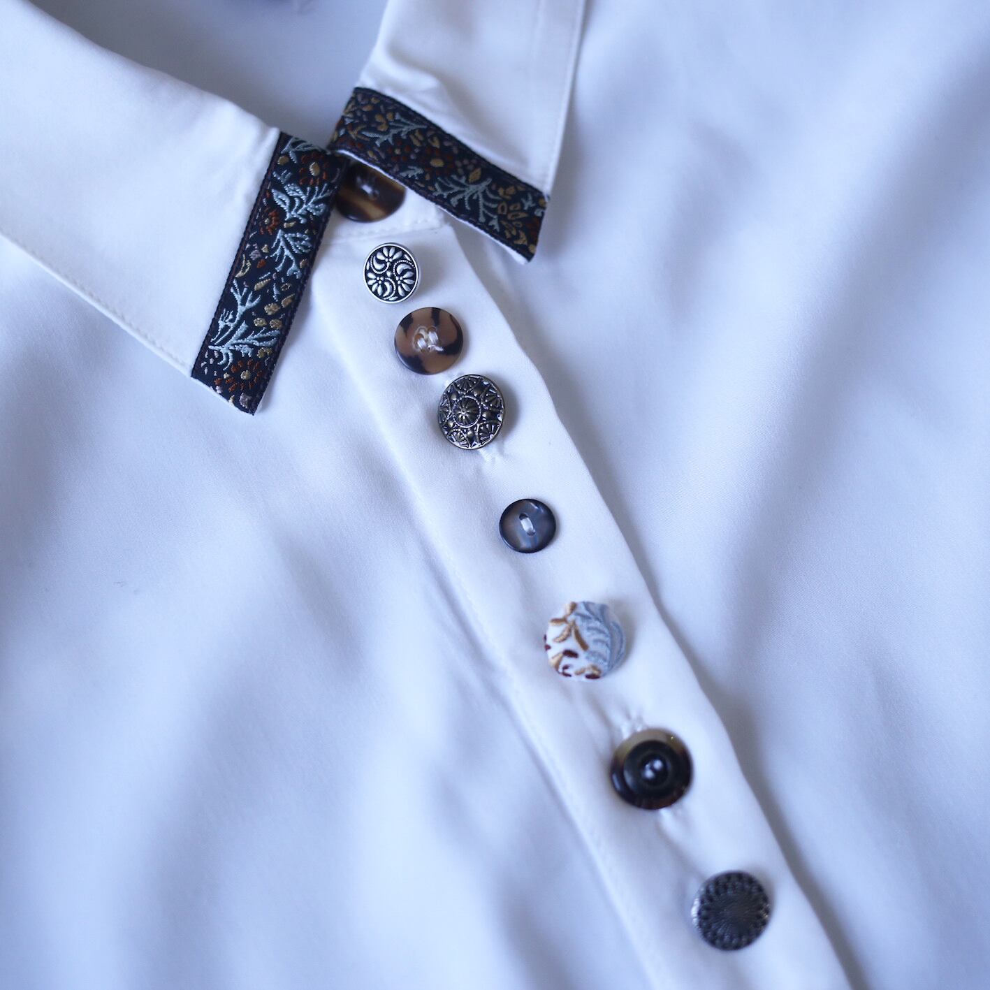 そしてこの服のスペシャル度を頂点まで高めてくれるのが"ボタン"、多種多様、色取り取りなボタンを比翼部分に集約し一枚の服にまとめ上げた絶品モノ