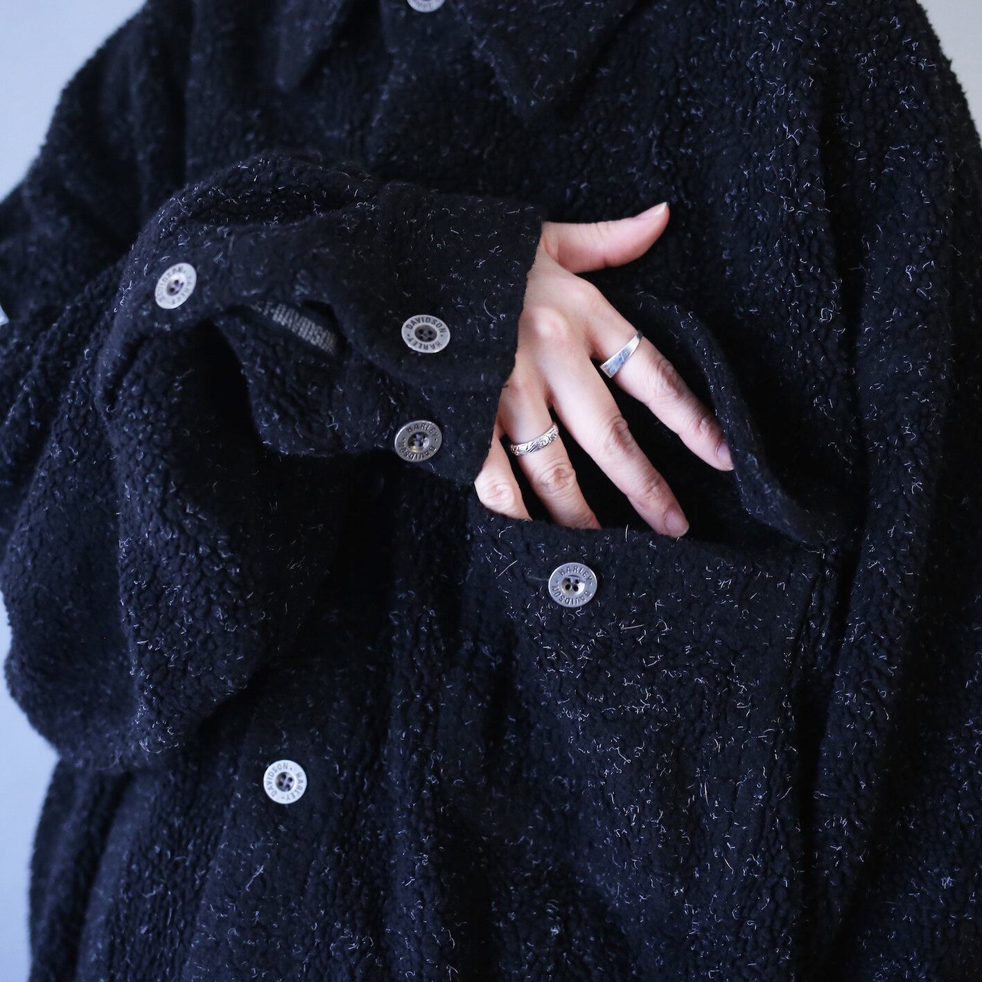 カラーは抜群の汎用性を持つ"黒"、ボアフリース特有の細い毛がモケモケと姿を表し抜群な世界観を構築◎