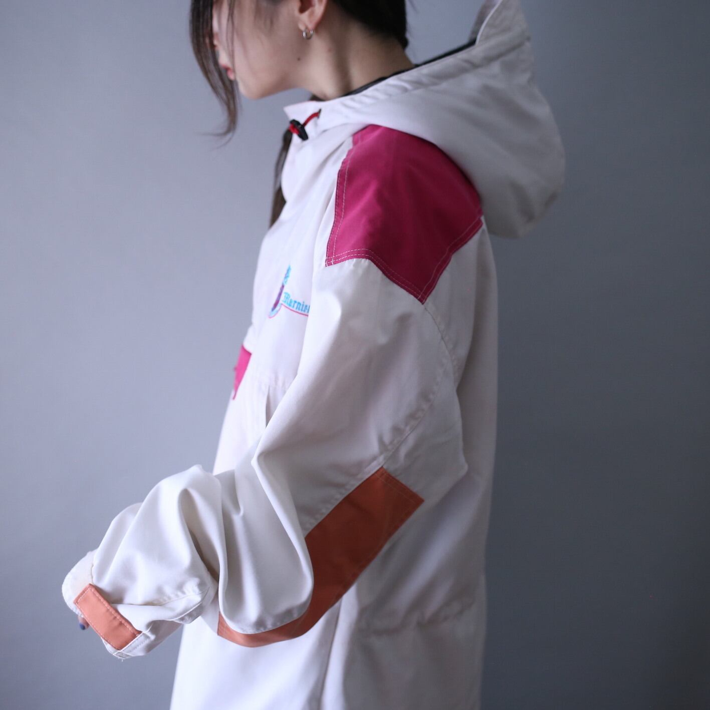 ナニコレカワイイ、となる絶妙〜な配色、中央には"SOS"と書かれた刺繍ロゴ、古着らしさを全開に放つアノラックパーカーの登場です