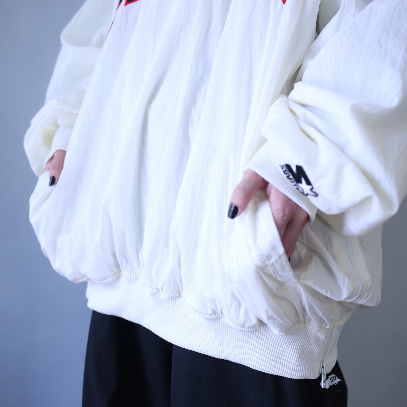 当店推しのストリートブランド"STARTER "から3XLのオーバーサイズ、春にズバッと映えるホワイトカラーのナイロンプルオーバーのご紹介です◎
