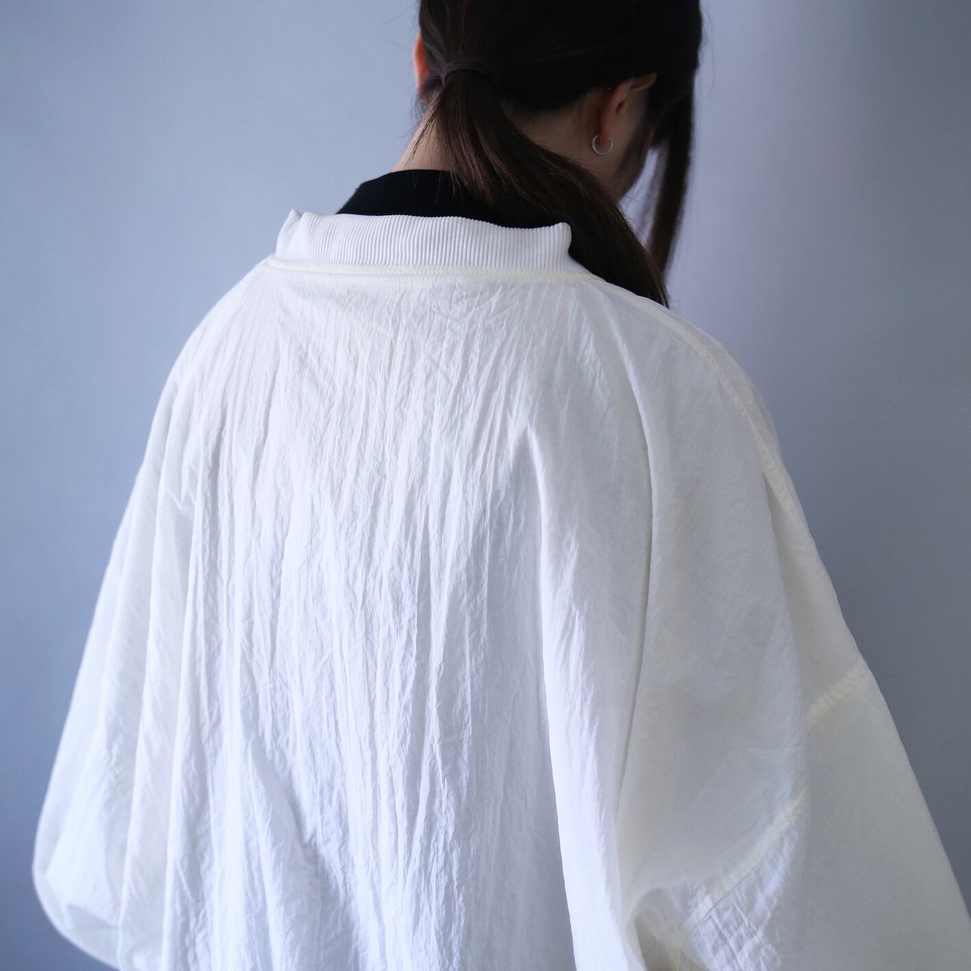 今まで数多くのナイロンプルオーバーを入荷してきましたが白一色で統一された1枚はお初、それだけ希少価値の高いモノとなっております