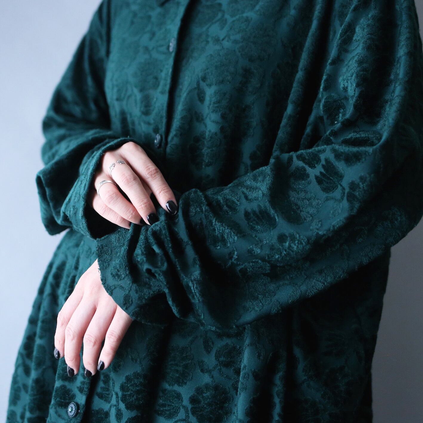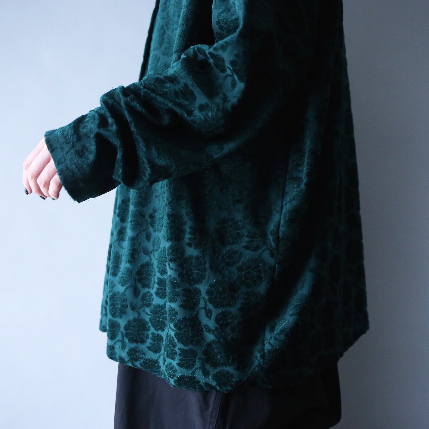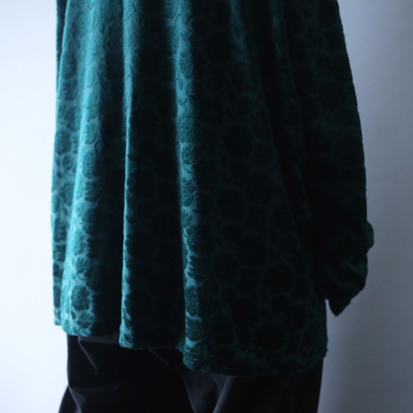 濃く美しいディープグリーン、妖艶で魅惑的な世界観を服全体から放つ花柄ベロアシャツの登場です