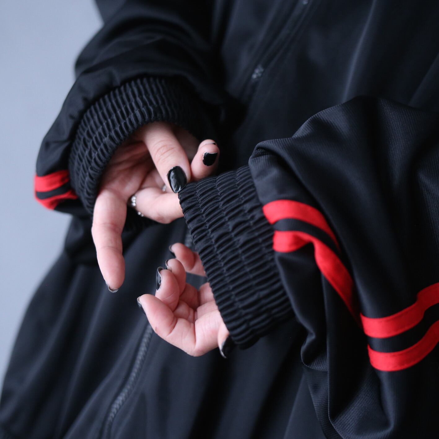 春の主役としてお探しの方も多いであろう"デカトラックジャケット"、今回は"黒×赤"の最強配色に仕上がったイイトコロをお待ちしました◎