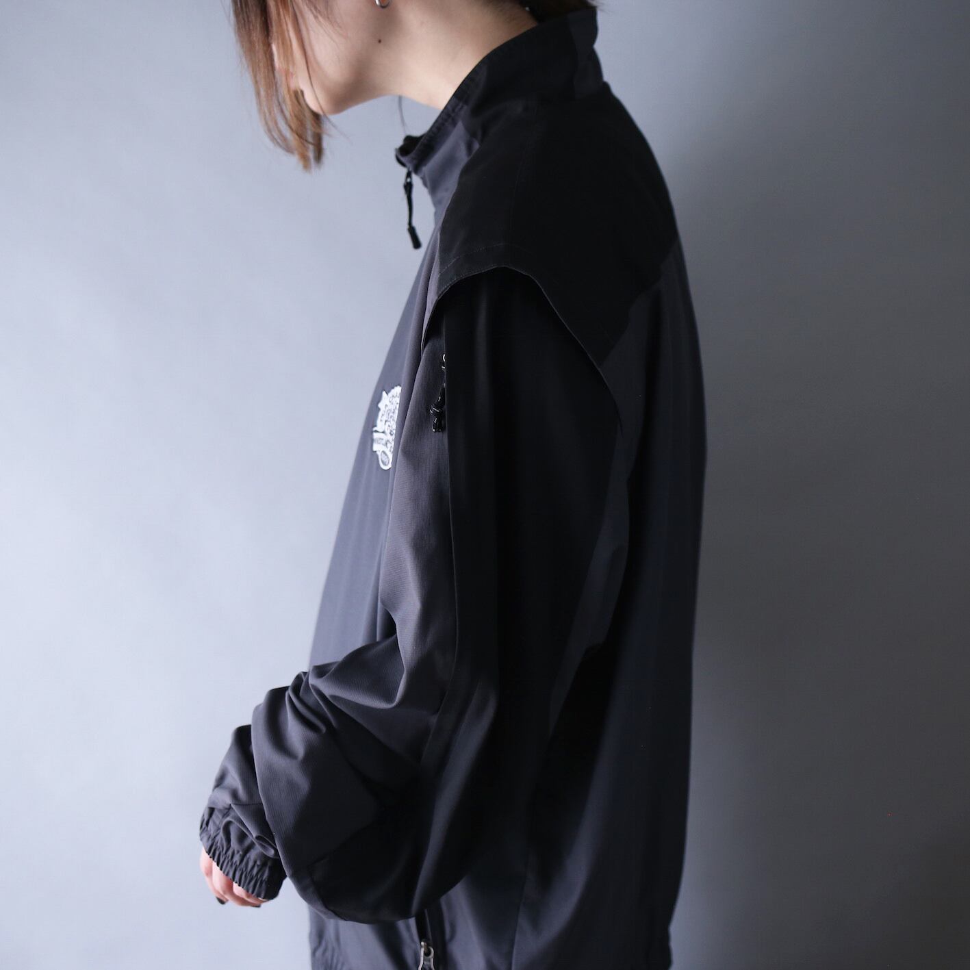 そしてこの服の最大のミソとなる両袖のジップ、半袖やタンクトップと合わせて袖を露出させてチラ見せコーデが個人的オススメ◎閉めてきてもそれはそれで格好良く纏まるので気分で使い分けても最高かと◎
