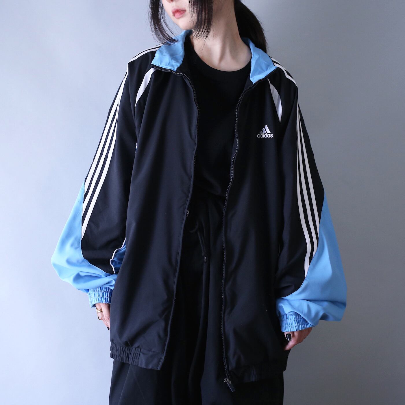 アディダスのトラックジャケットというと多くの方が想像するのが黒地に白のスリーラインが施されたものだと思います、コチラはそこに"水色"の切り替えでアクセントを加えた"唯一無二"なフレーバー香る逸品