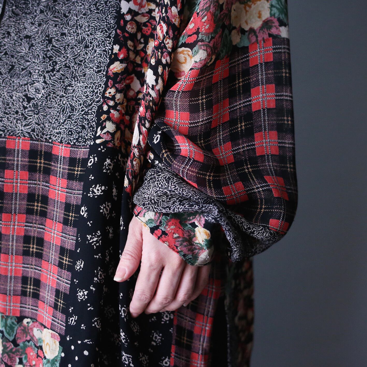冒頭に書いた通り、柄の中でも圧倒的人気な花柄と、ついで王道のチェックとドットをパネルのように組み合わせて作られた逸品。