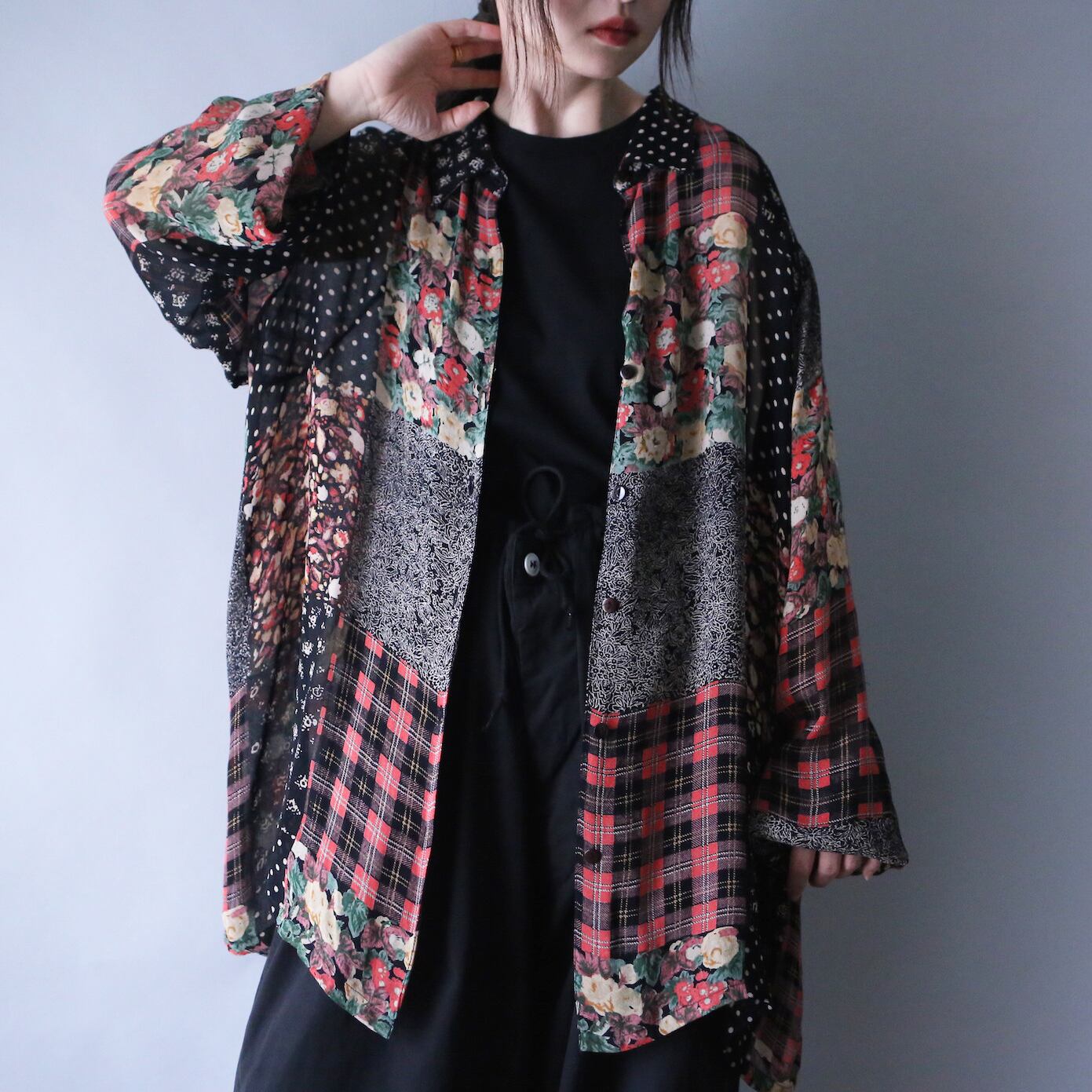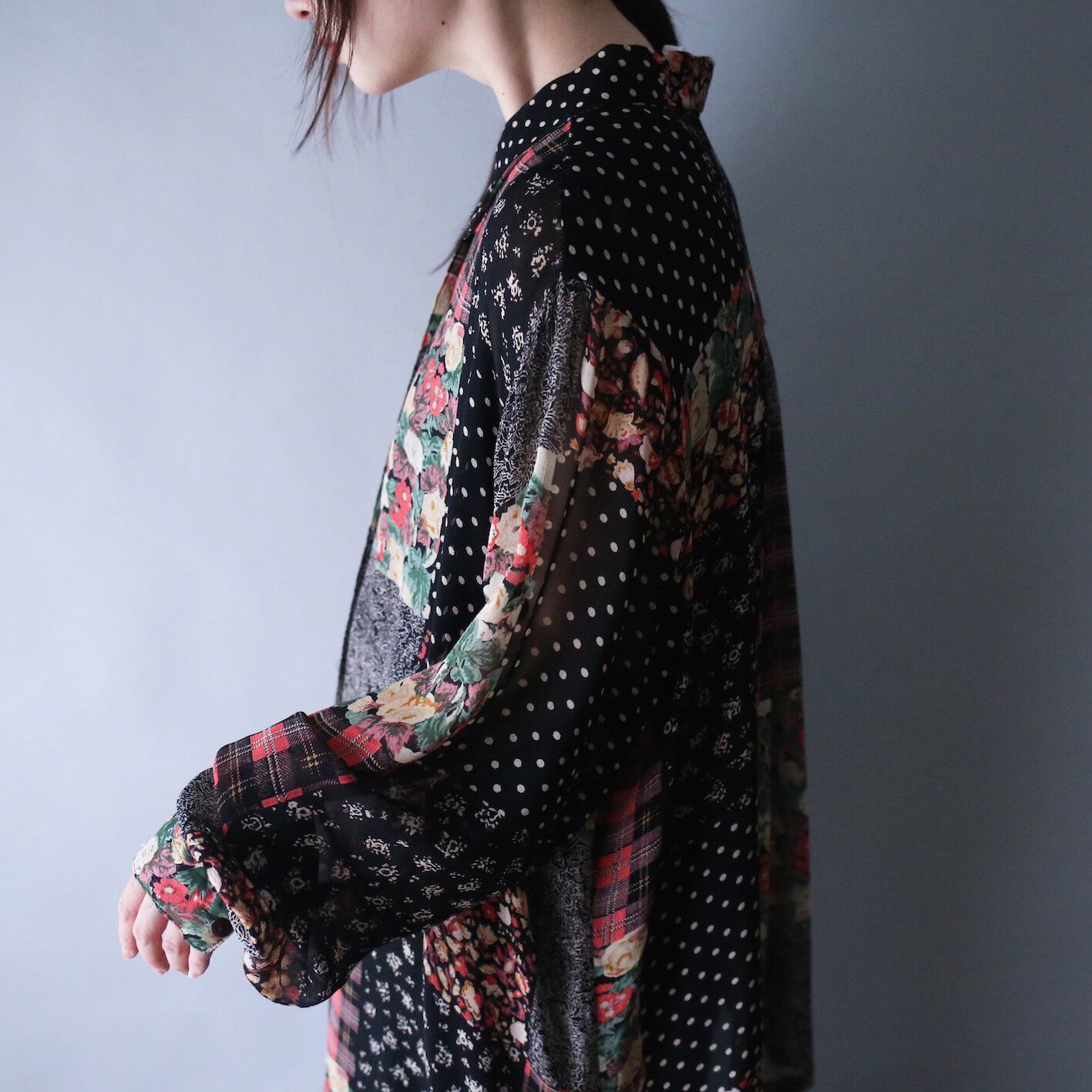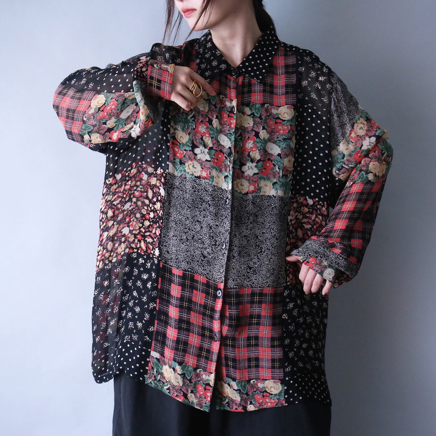 古着の王道である総柄シャツより、特に人気の高い花柄やチェック、ドットを組み合わせた最強シアーシャツの登場です。