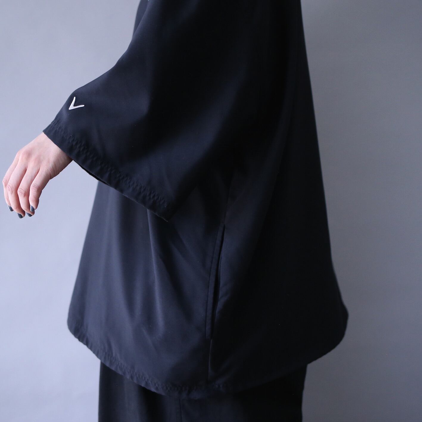 黒一色で統一されたボディに凛として映える左胸、左袖、後ろ裾に施された白の"刺繍"◎プリントではなく刺繍というところが憎いほど嬉しいですし、黒地に白というモノトーン配色でcoolさをさらに底上げ◎