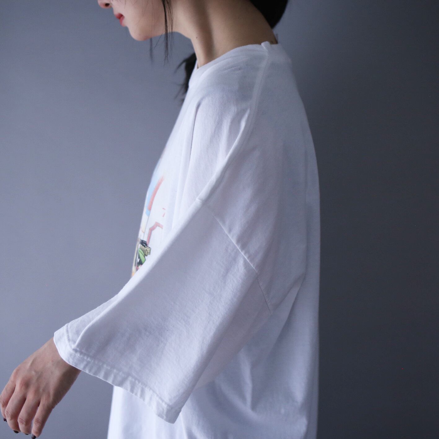 ノリの良いプリントTEEは探してもなかなか見つからないもの、ましてや白ボディでオーバーサイズはかなり入手難易度高めですのでビビッと来た方、いっちゃって下さい◎