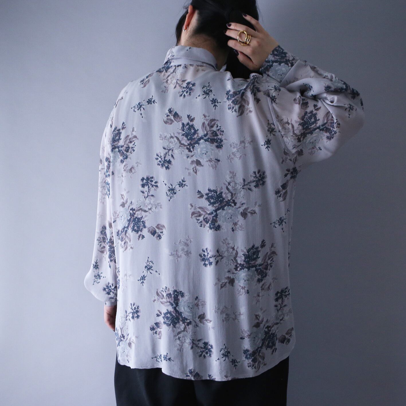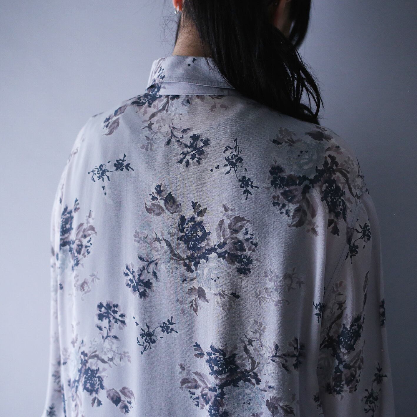 モードな雰囲気で大人気の‘‘花柄シアーシャツ‘‘より新参者登場、グレーベースで幻想的な雰囲気をビシビシと感じるスペシャルな逸品をご紹介します。