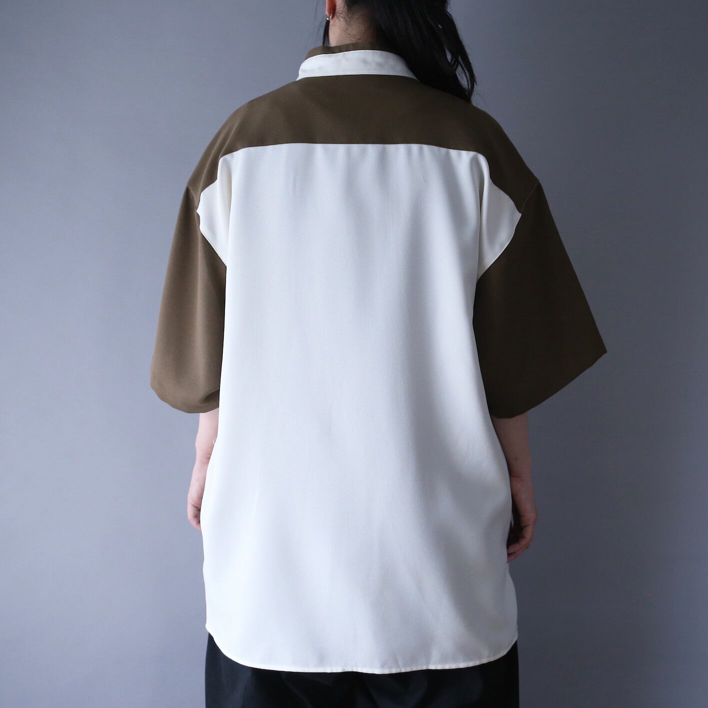 襟部分をミニマルに仕立てたバンドカラーシャツ、年々数を減らし続け見つけるのは困難を極めますがバイカラーはその中でも究極の希少価値を誇るアイテム。