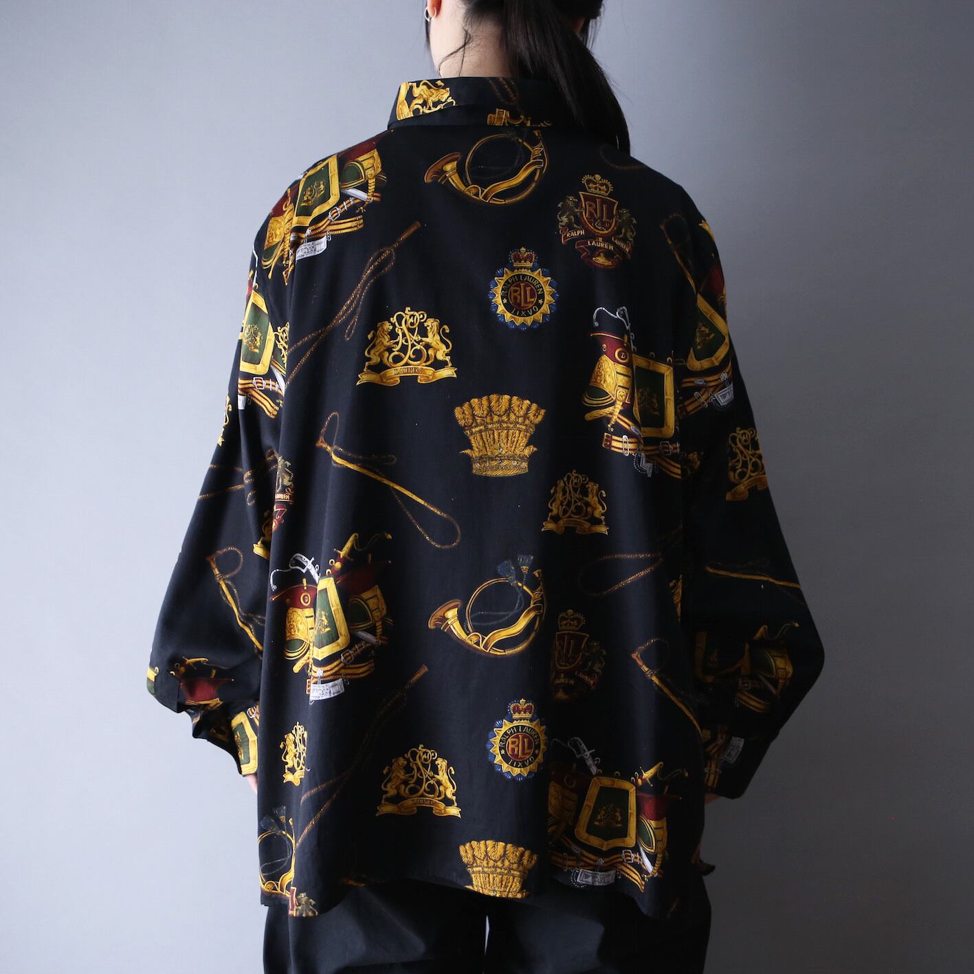 ラルフといえばカジュアルなイメージが強いと思いますが全くの真逆、ブラックベースにゴールド系のオーナメントをプリントしたラグジュアリーな柄シャツ。繊細なタッチや色使いが価値を底上げ。