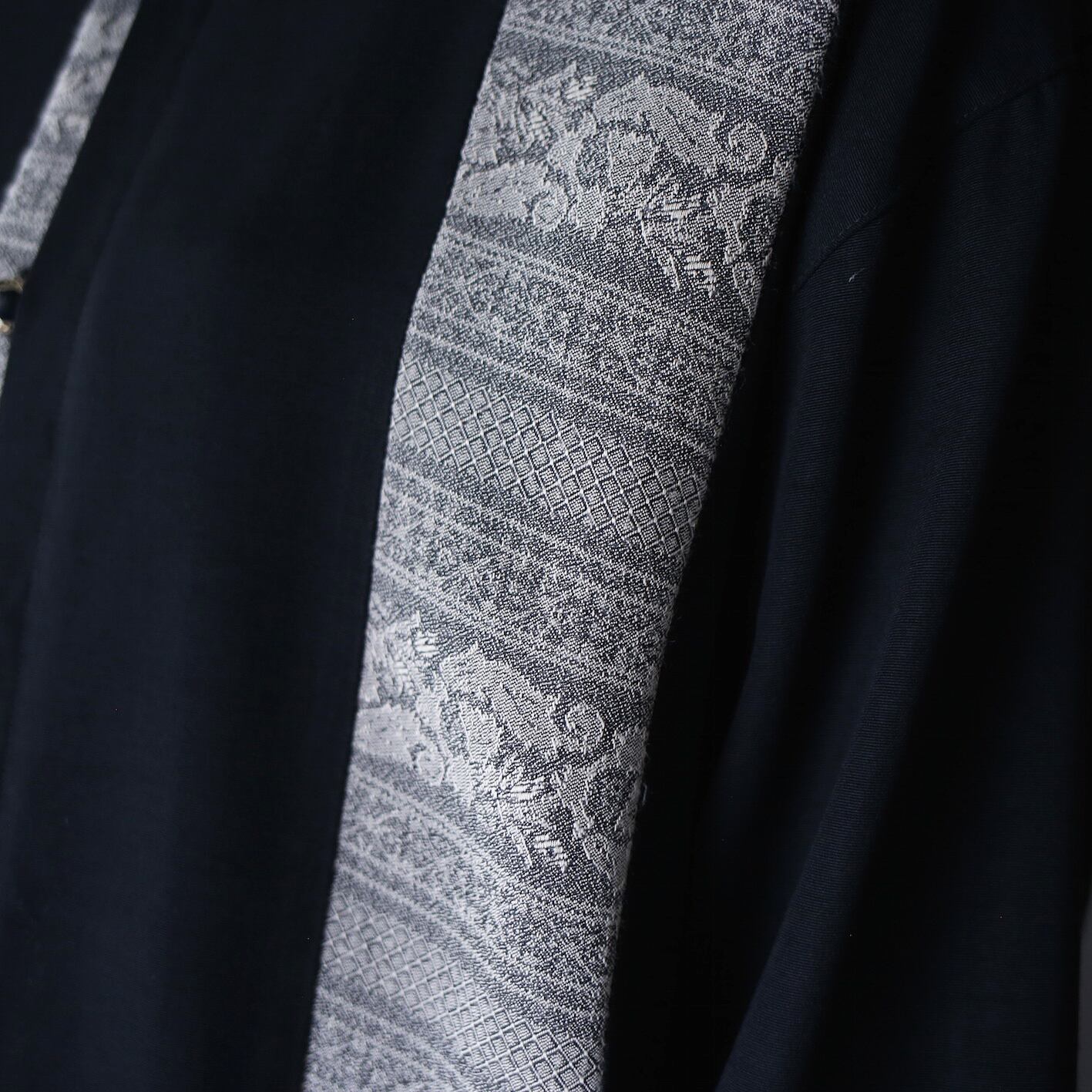 そのボタンをチラ見せするように半分のみ前立てで覆い隠した半比翼仕立てがギミックとして足され他にない個性を発揮◎ さらにシャツ襟を無くしたバンドカラーで無駄を省き洗練されたミニマムモードな雰囲気を演出。
