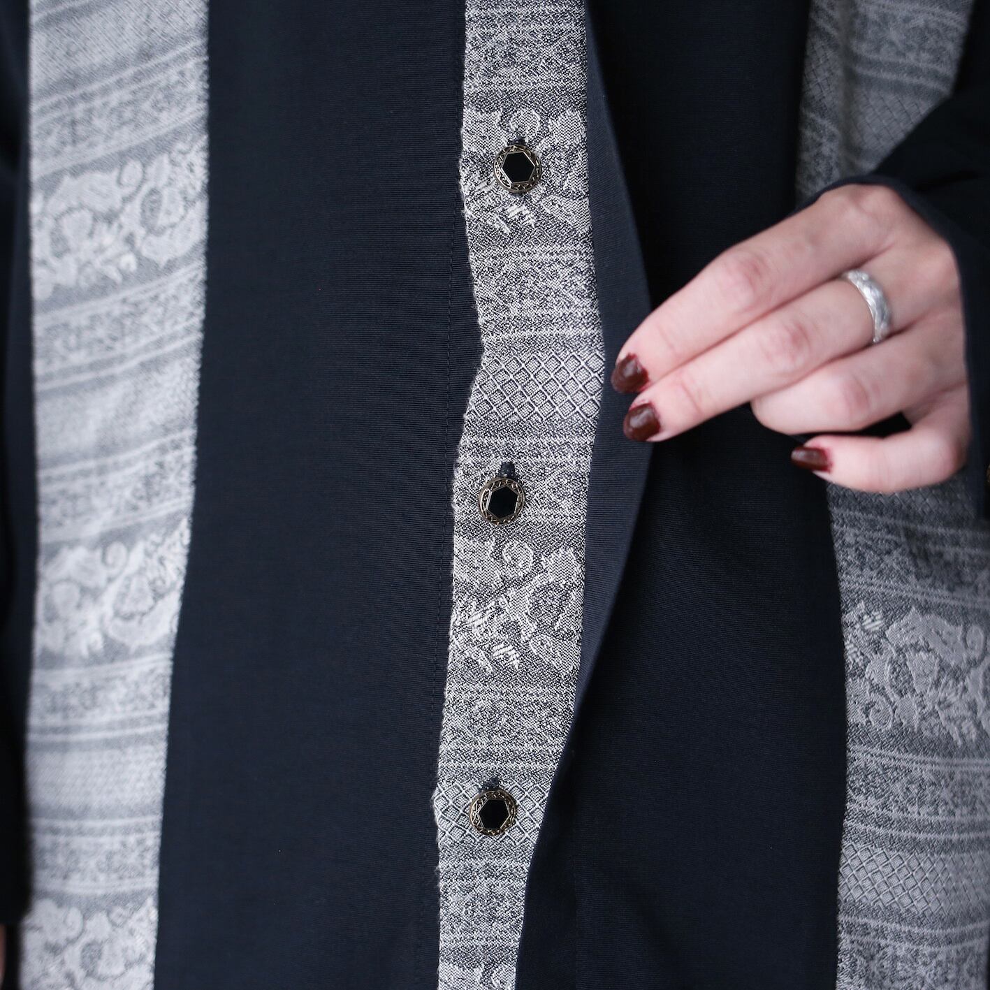 ボタンには全て中央に六角形のブラックパーツをはめ込み周りにも繊細な彫り込みを施した細工ボタンを使用、いいアクセントとなり高級感をグーーンと底上げ◎