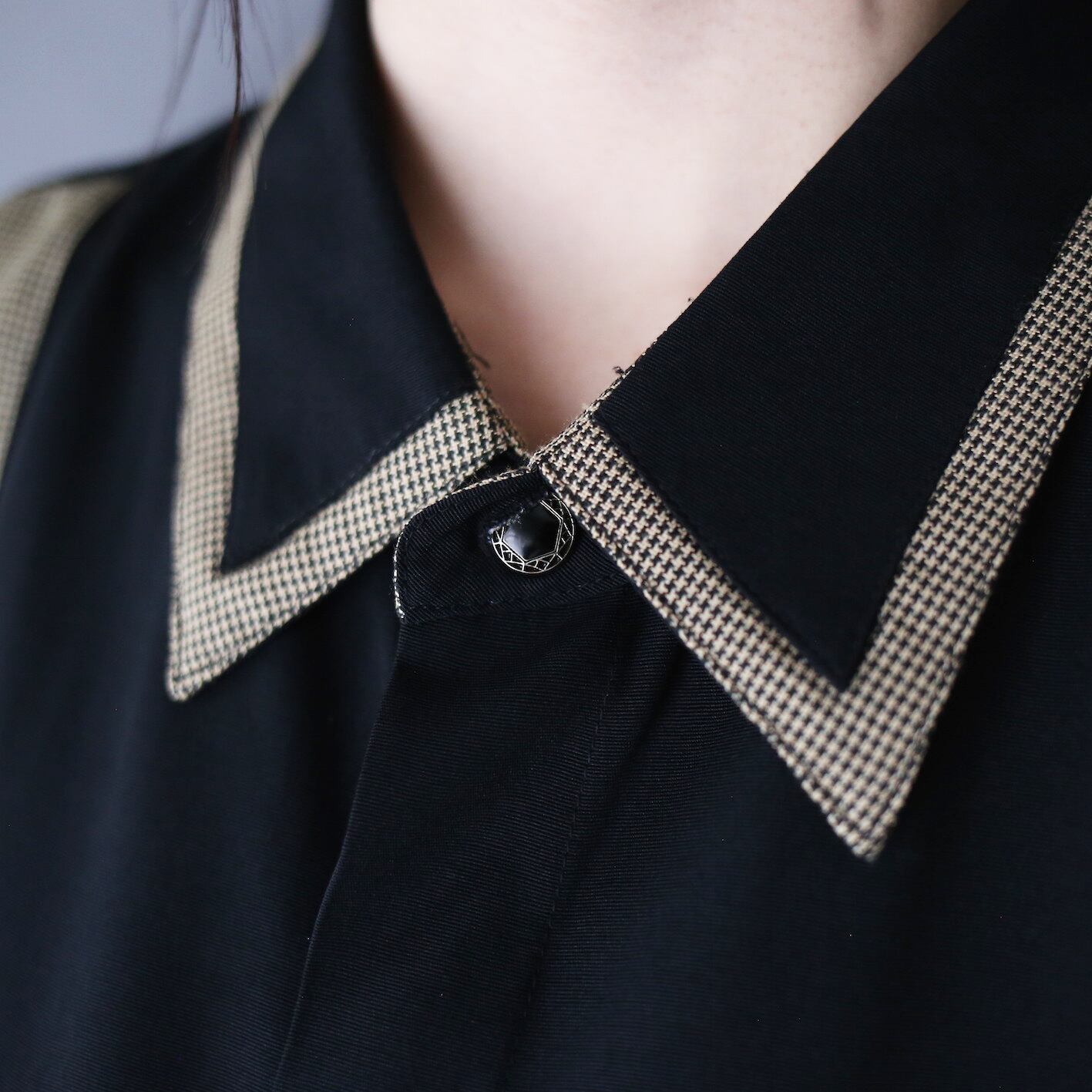 冒頭にも書いた通り襟・前身頃・袖口の3点に千鳥柄のような切り替え生地を仕込むことで統一感のあるデザイン、柄が細かいので派手すぎず上品な仕上がり◎