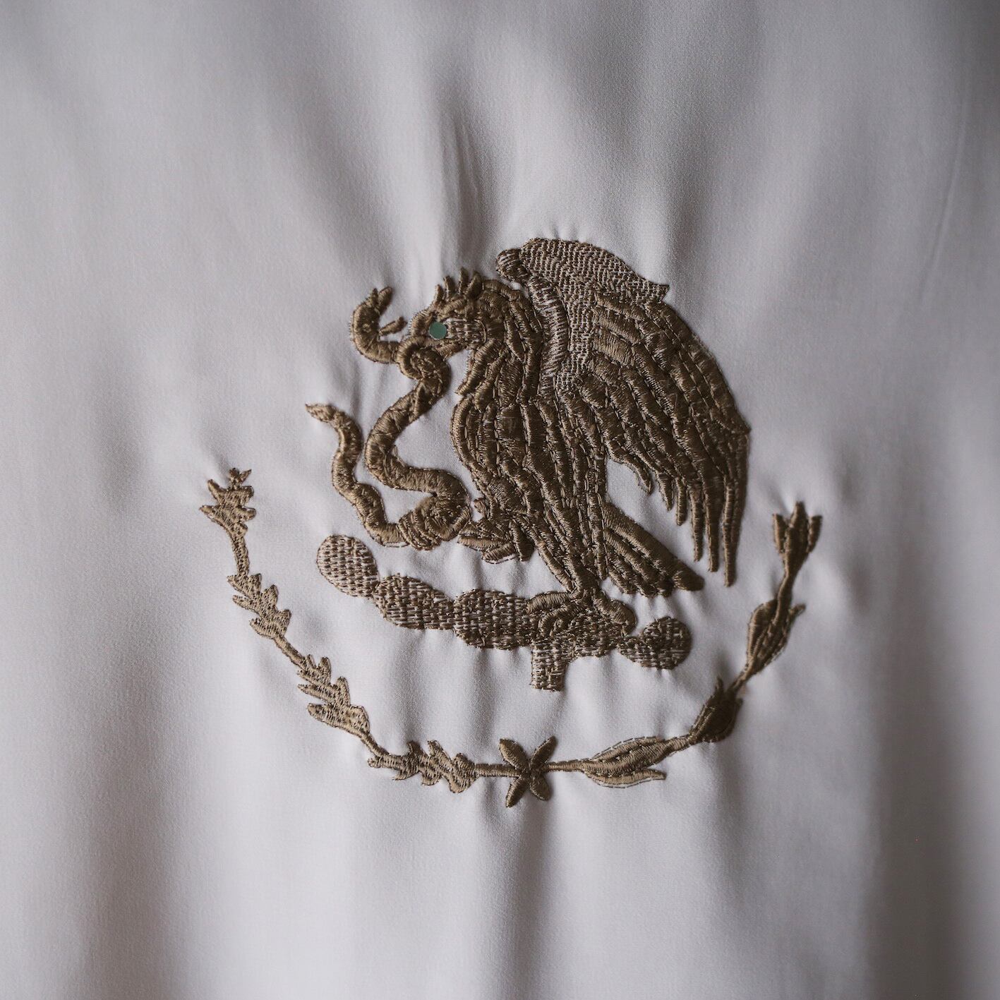 まず前面は蛇を捕食している鷹と中華風の模様を刺繍で交互に並べチャイナ感満載。このラーメンの丼でよく見る四角い渦巻き模様は”雷紋”といい、魔除けの意味が込められているそう。
