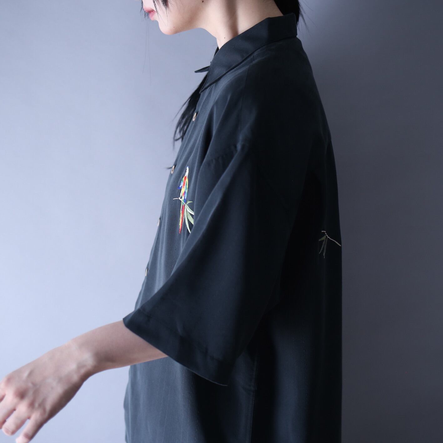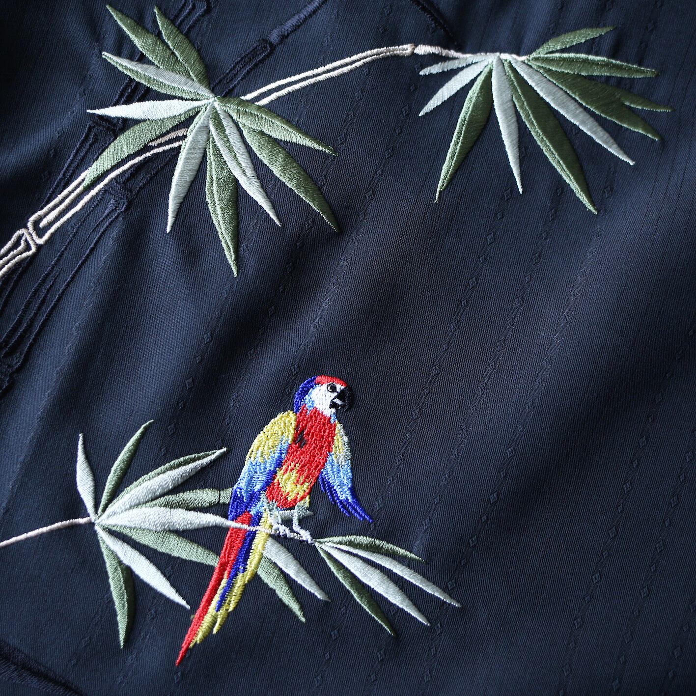 ブラックベースに竹やインコの"刺繍'を両面に施した"高級感"と"汎用性"を両立した良い〜デザインシャツが入りました◎