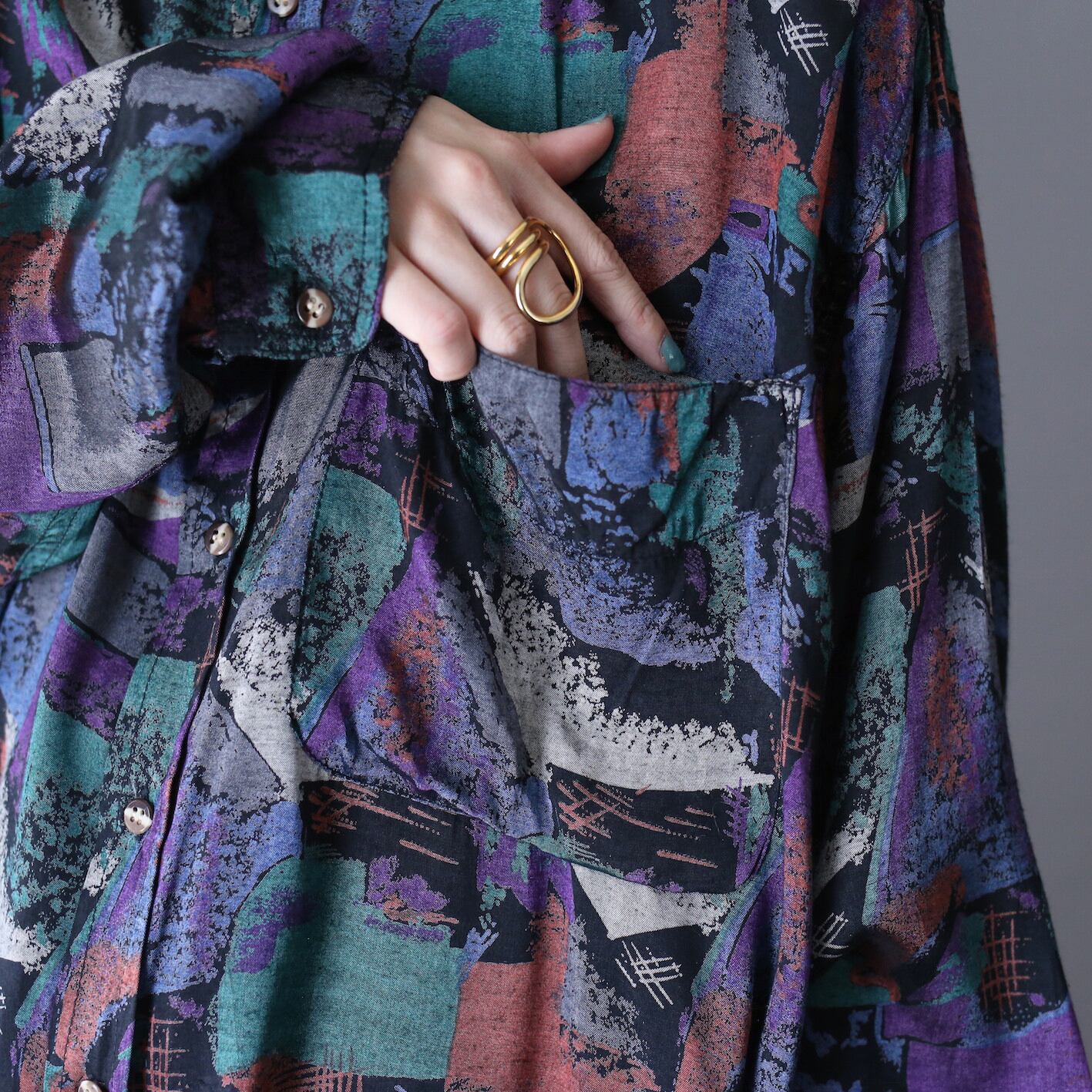 gloss fabric poison color abstract painting pattern over silhouette shirt