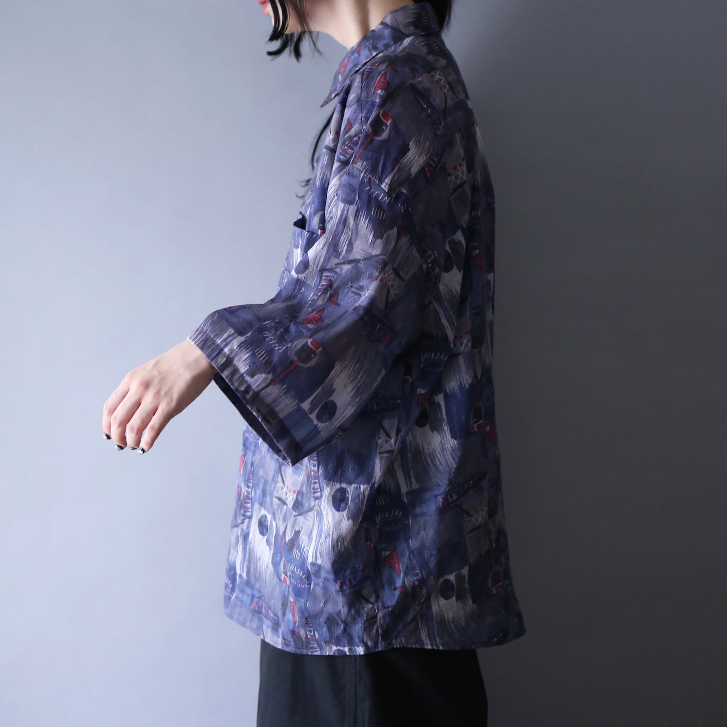 当店人気の"抽象柄シャツ"より光沢を帯びた生地でラグジュアリーさを加速させつつ、良い意味で掴み所のない柄と紫という色味でアンニュイな世界観も魅せてくれる至極の一枚持ってきました。