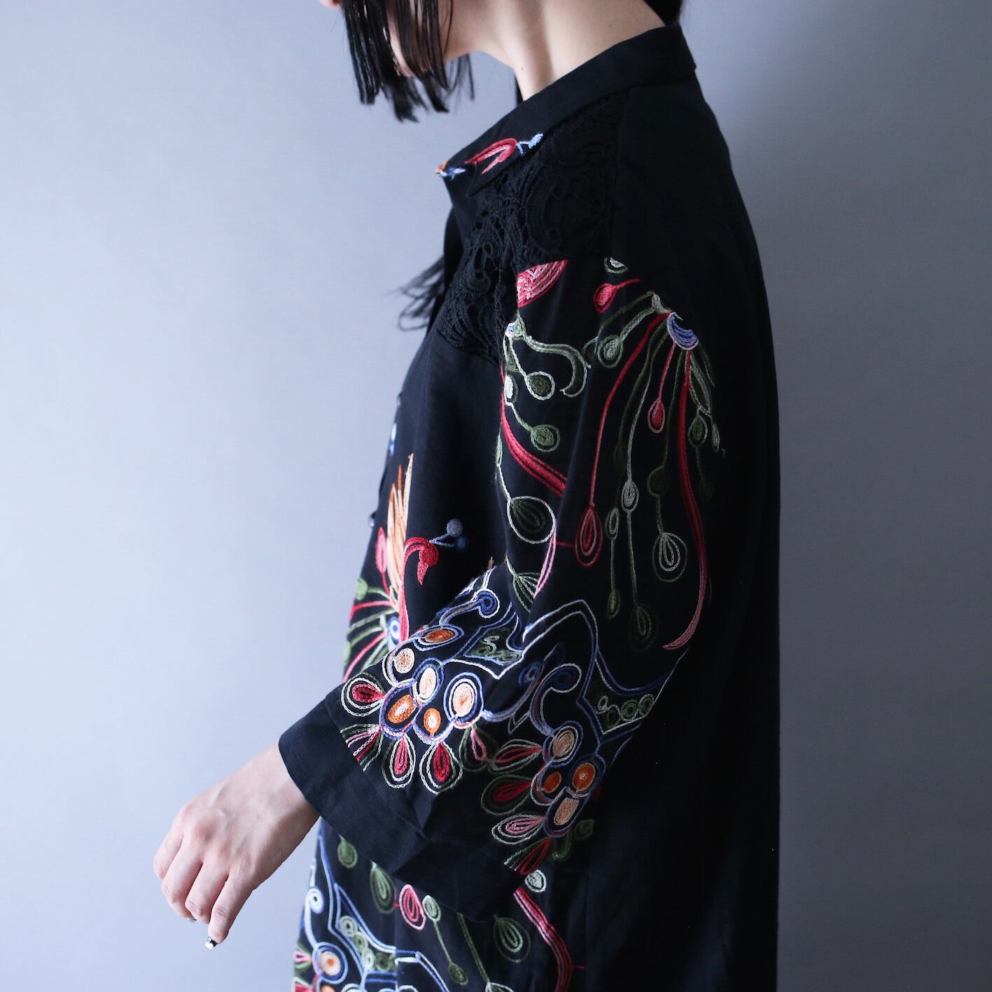 プリントかと思いきやなんと全部”刺繍”、さらに肩にはレース生地が重ねられまさに”一点物”である超絶スペシャルアイテム来ました。