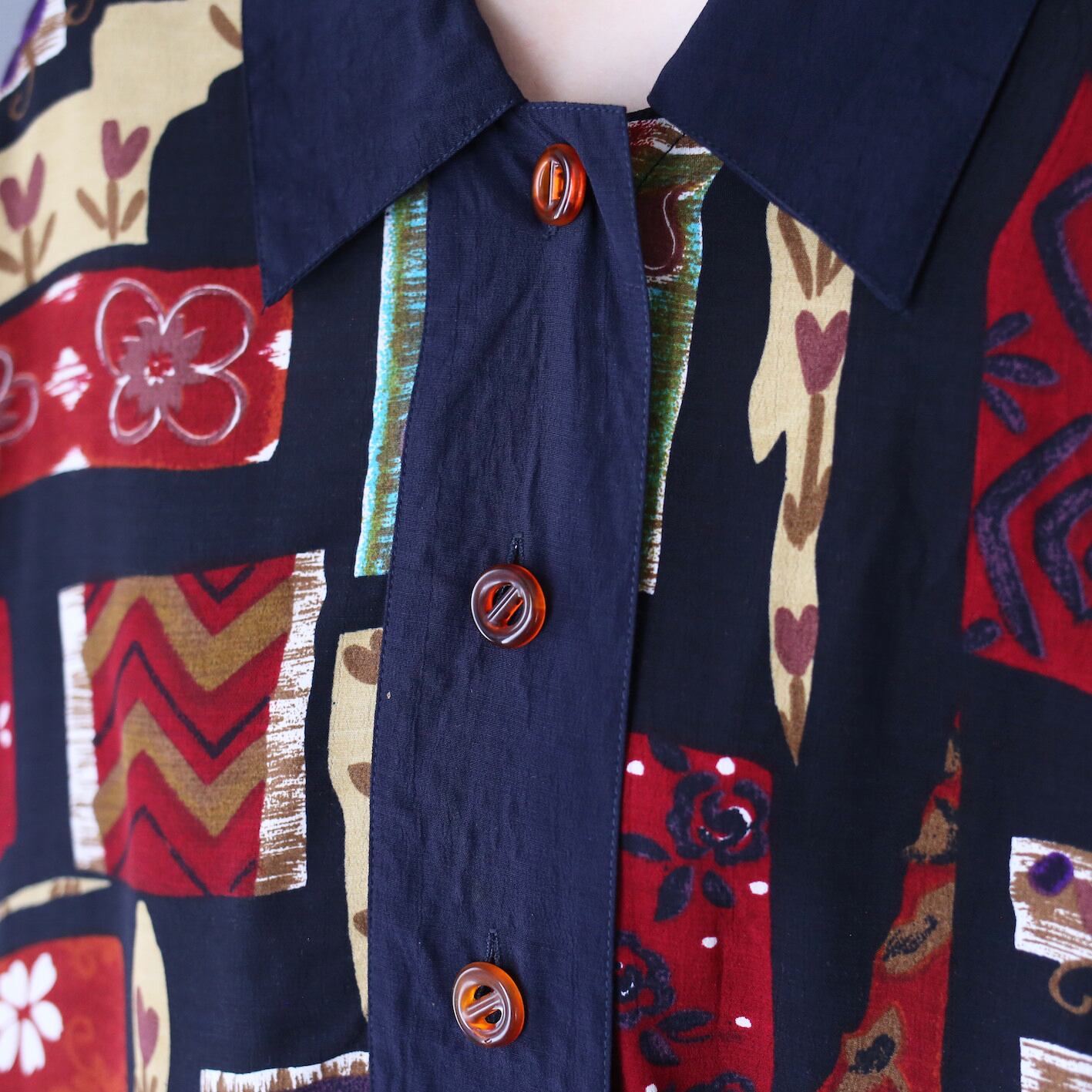 柄や配色、大ぶりなボタンがレトロな世界観を完璧に作り上げたスペシャルな逸品です〜