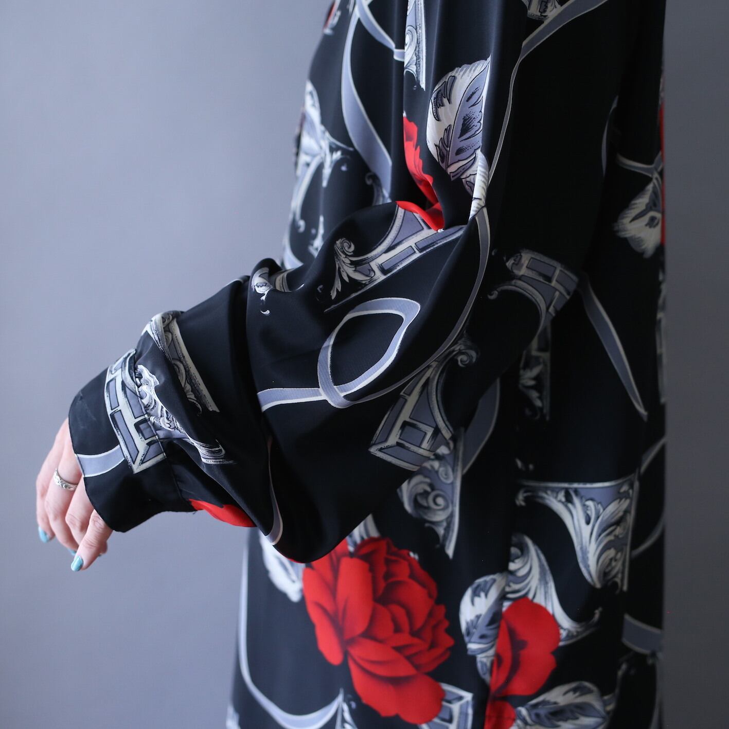 ブラックベースにモノクロのヨーロピアンな柄、そして色鮮やかな真っ赤な花。マットな配色にしっかりと陰陽がつけられ絶大な存在感を提供◎