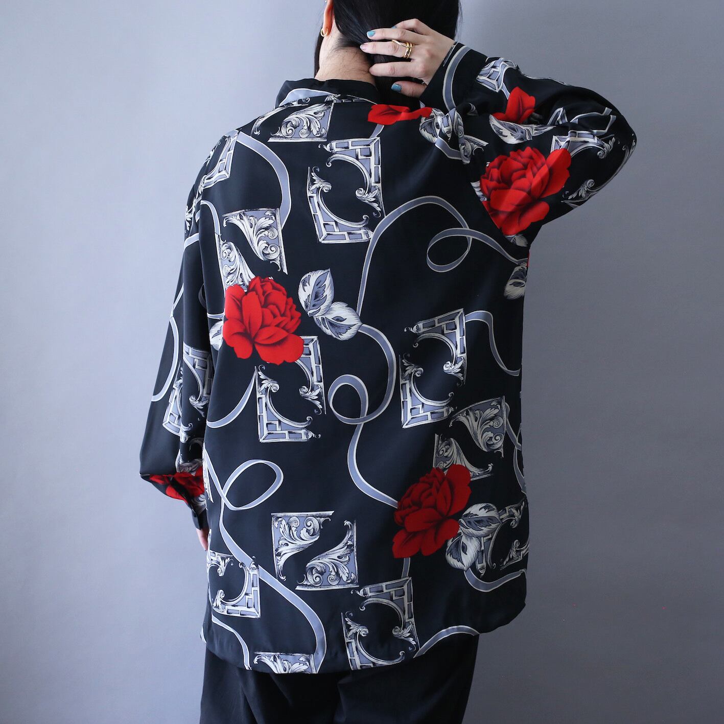 真っ赤な花が印象強く彼岸花のような不吉さを纏った1着、インパクト絶大なので1枚で充分サマになる逸品です。