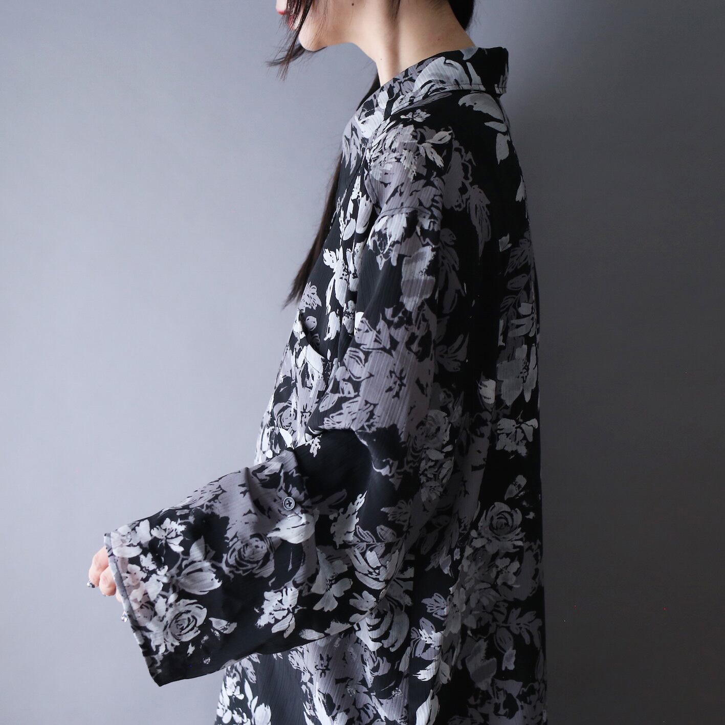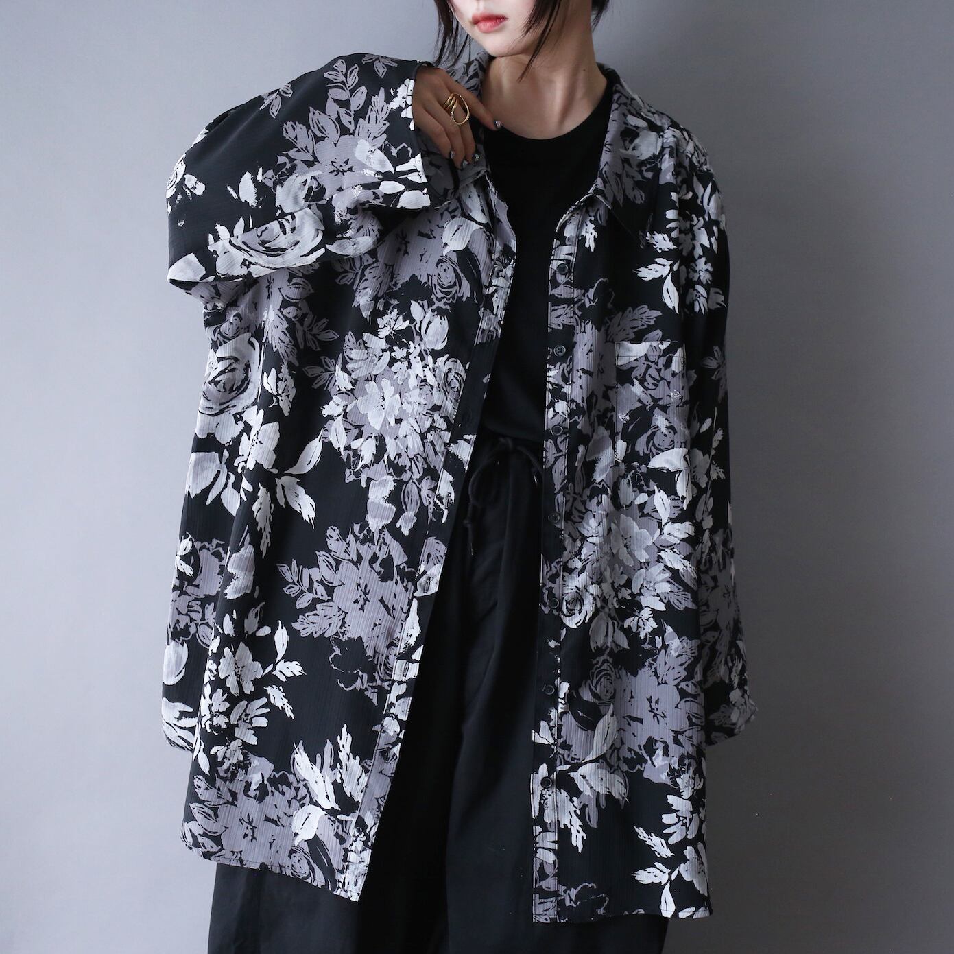 4~5XL相当の"超"オーバーサイズボディにシワ加工と盛り沢山のモード映えする花柄シャツきました。