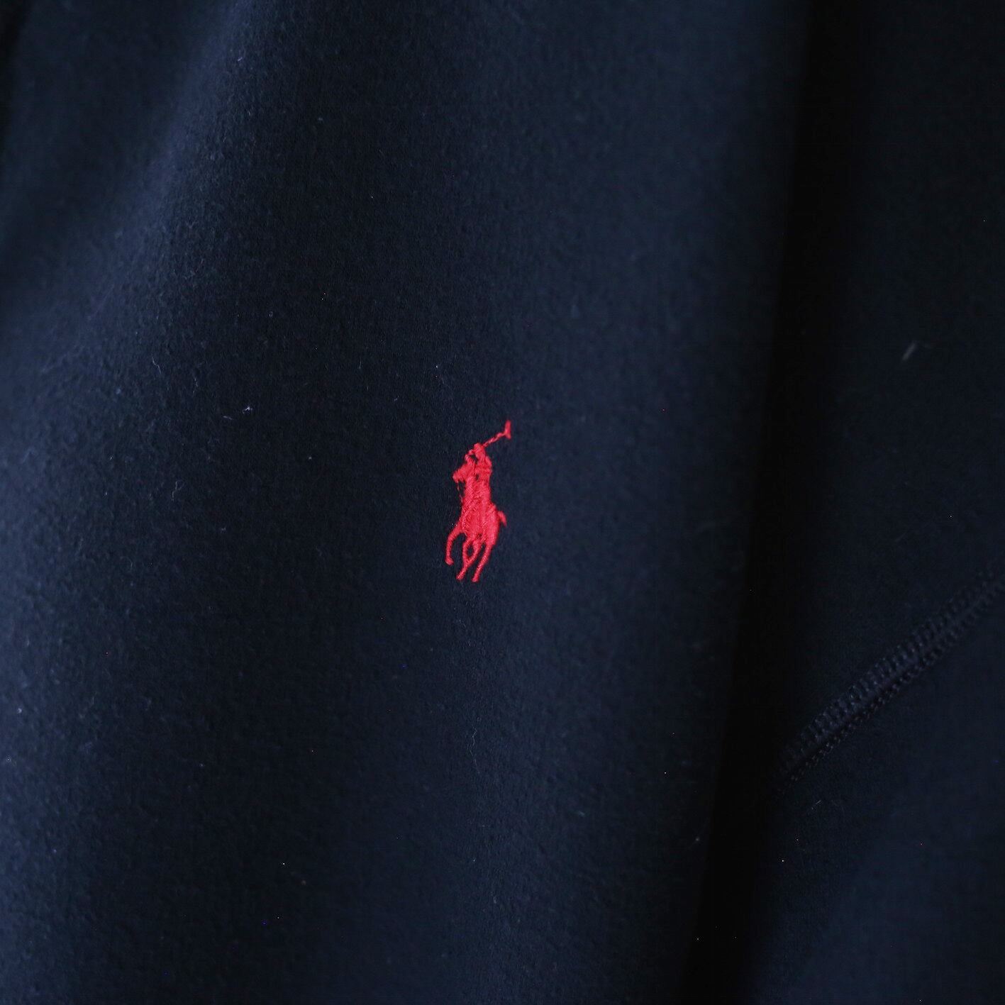 左胸にはラルフの象徴とも言えるポニーの刺繍をオン、黒に対して赤の配色が良く映えワンポイントながら存在感を遺憾なく発揮してくれます◎