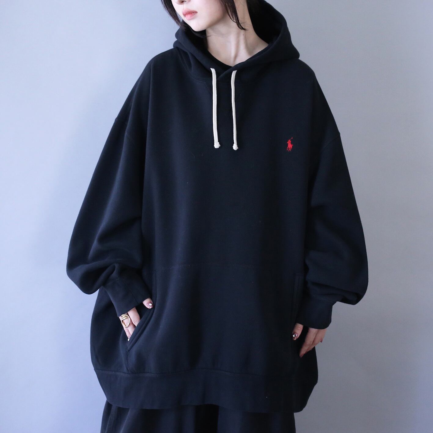パーカーのイメージがあまりないラルフローレンでまさかの激オーバーサイズ、黒ボディで汎用性にも優れコレからの時期に活躍がMAX期待できるスペシャルな逸品です〜