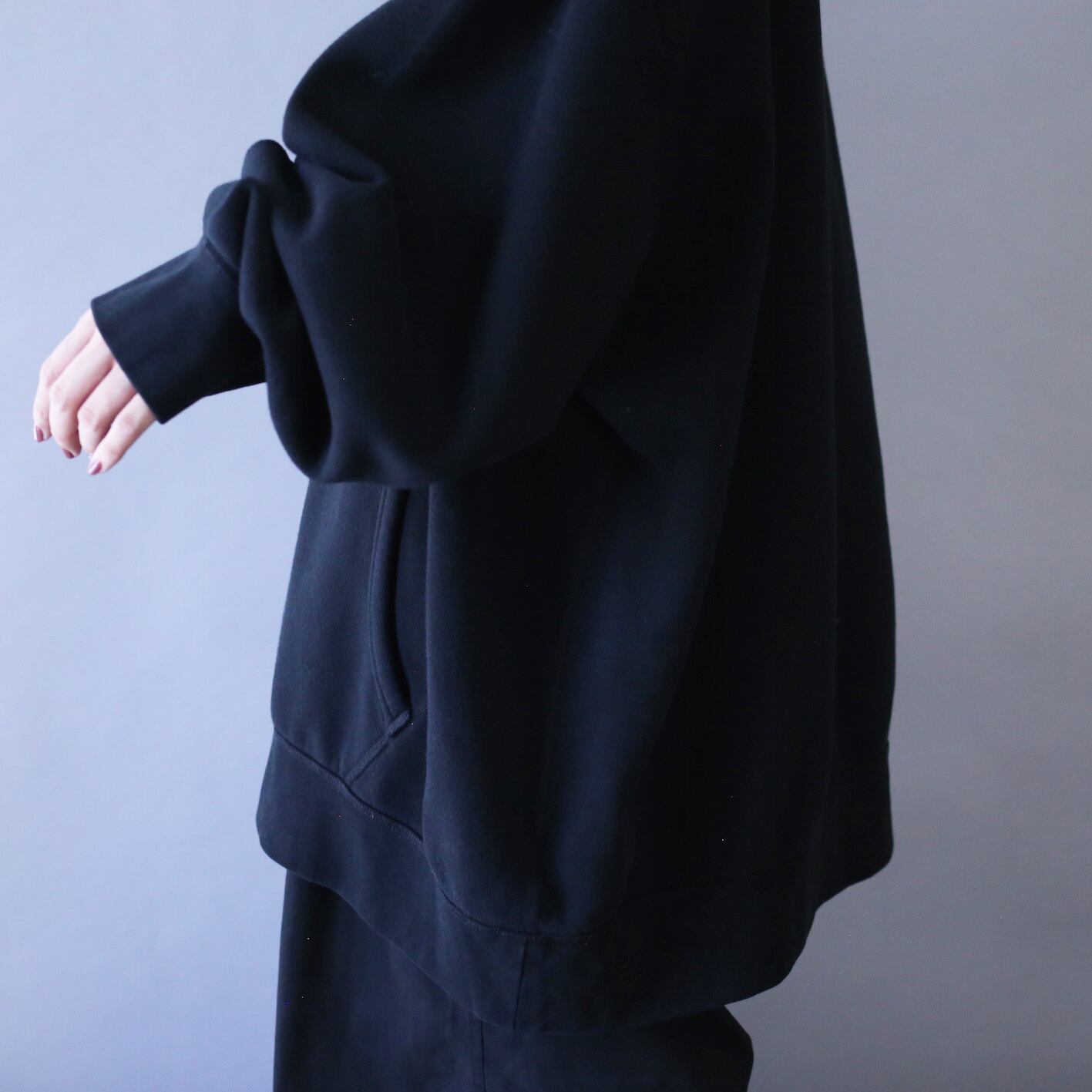 そして最大の魅力とも言えるこのデカさ、ただ大きいのではなく着丈77cmに対して身幅81cmの超ワイドシルエット、横に大〜きく生地を使うことによって溜まり具合やオチ感を加速、オーバーサイズ好きにはたまらない激ユルなシルエットに仕上がってます◎