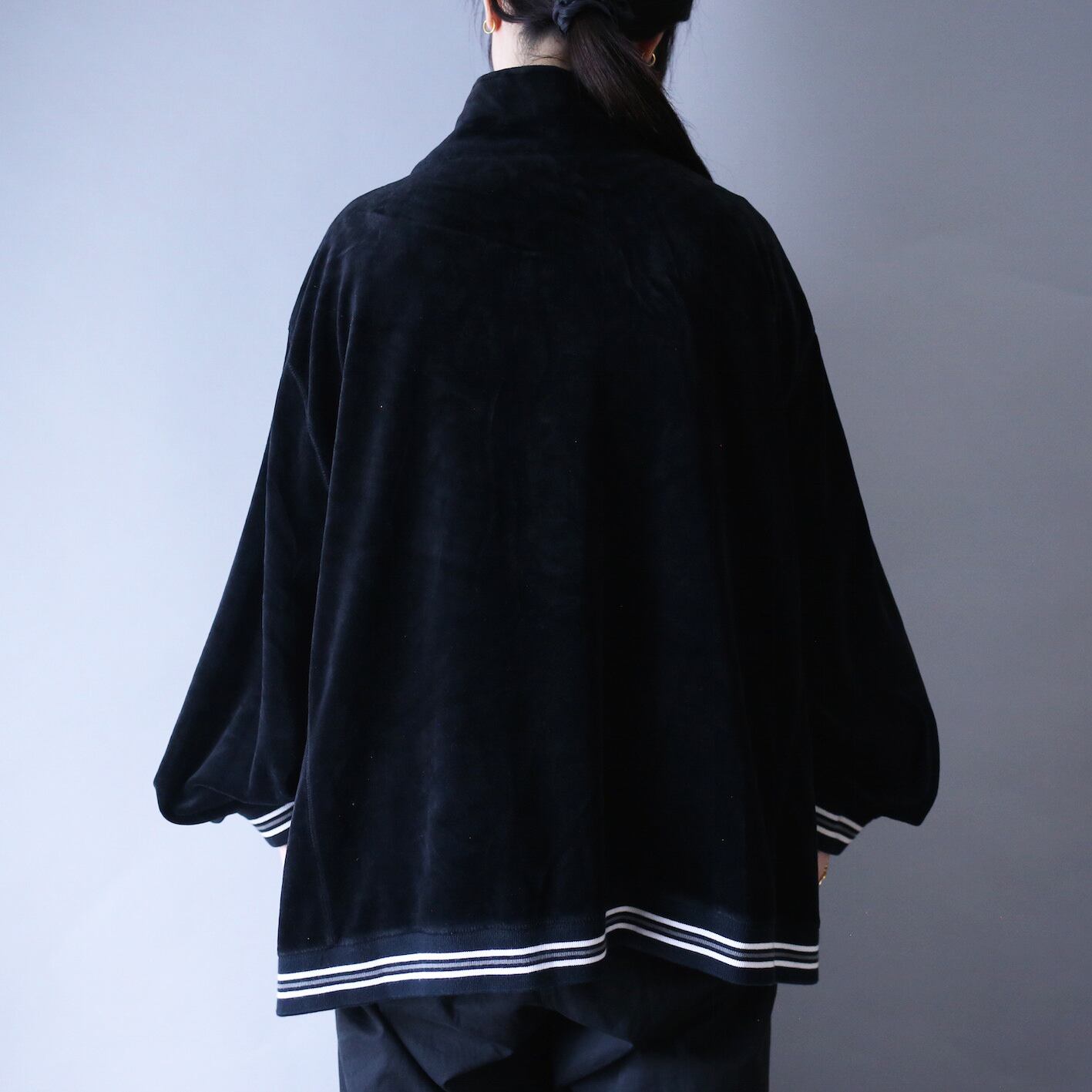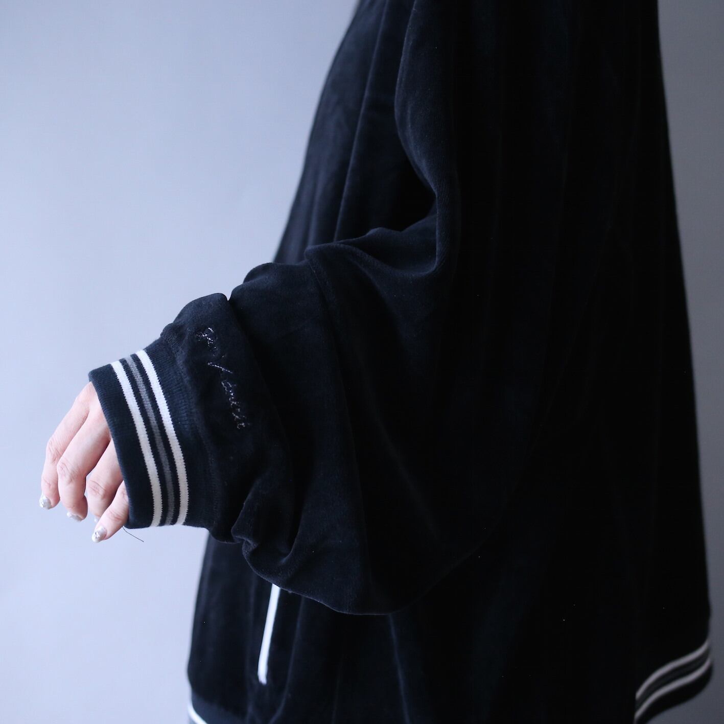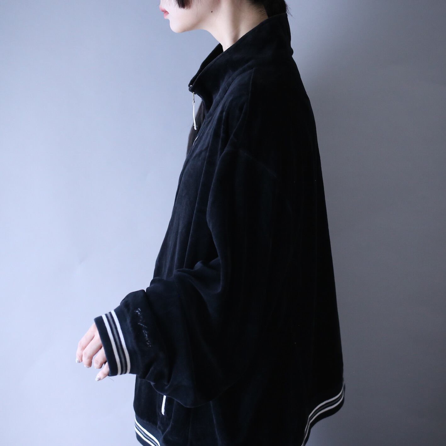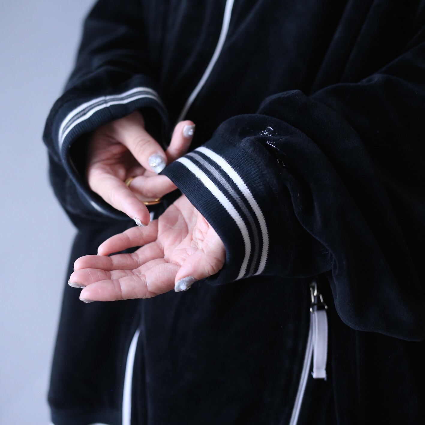 まだまだその人気っぷりを我が物にしている王道にして最強、”黒×白”のトラックジャケットよりベロア生地を使用、リブにはラインの効いた切り替えを施した個性派な1枚をご紹介。