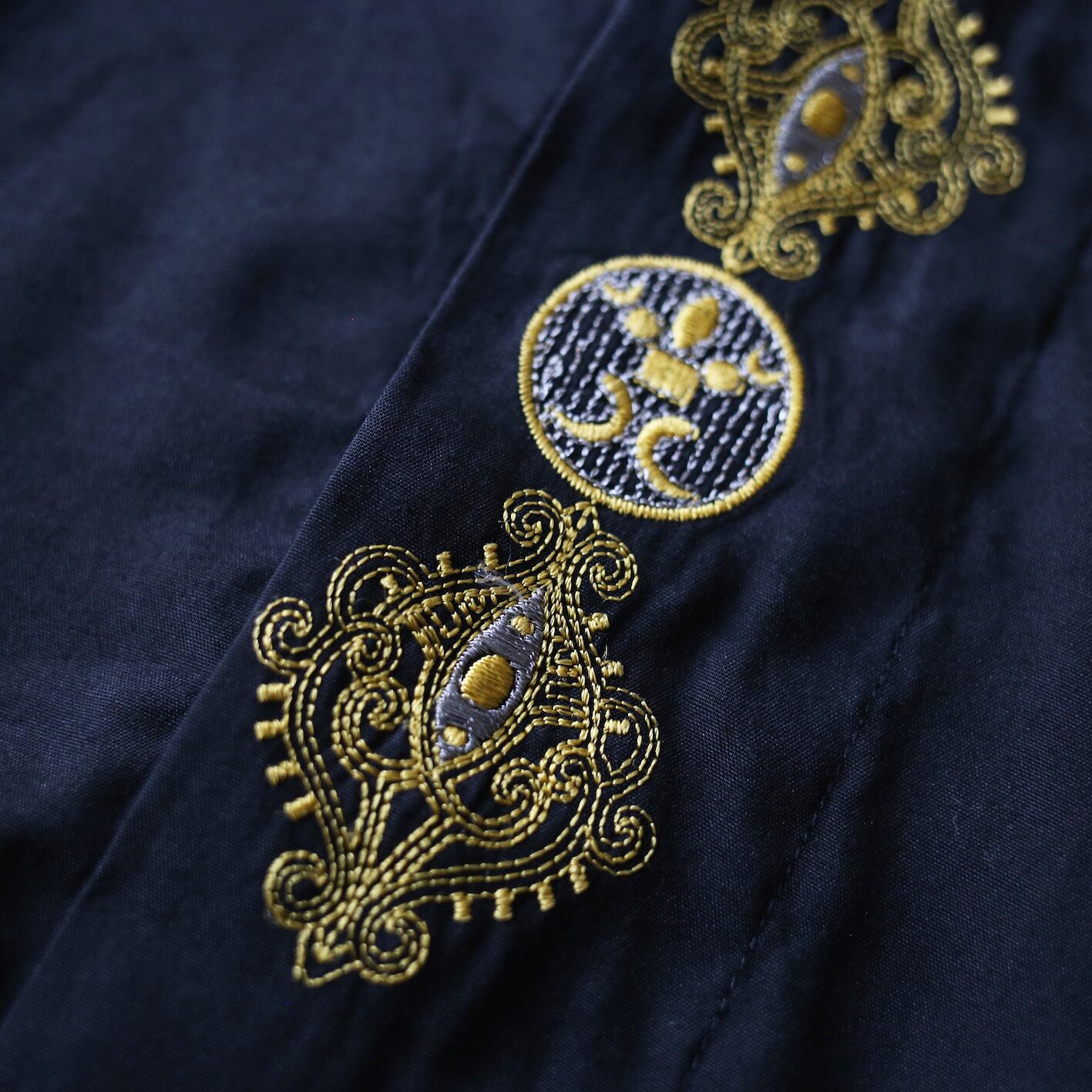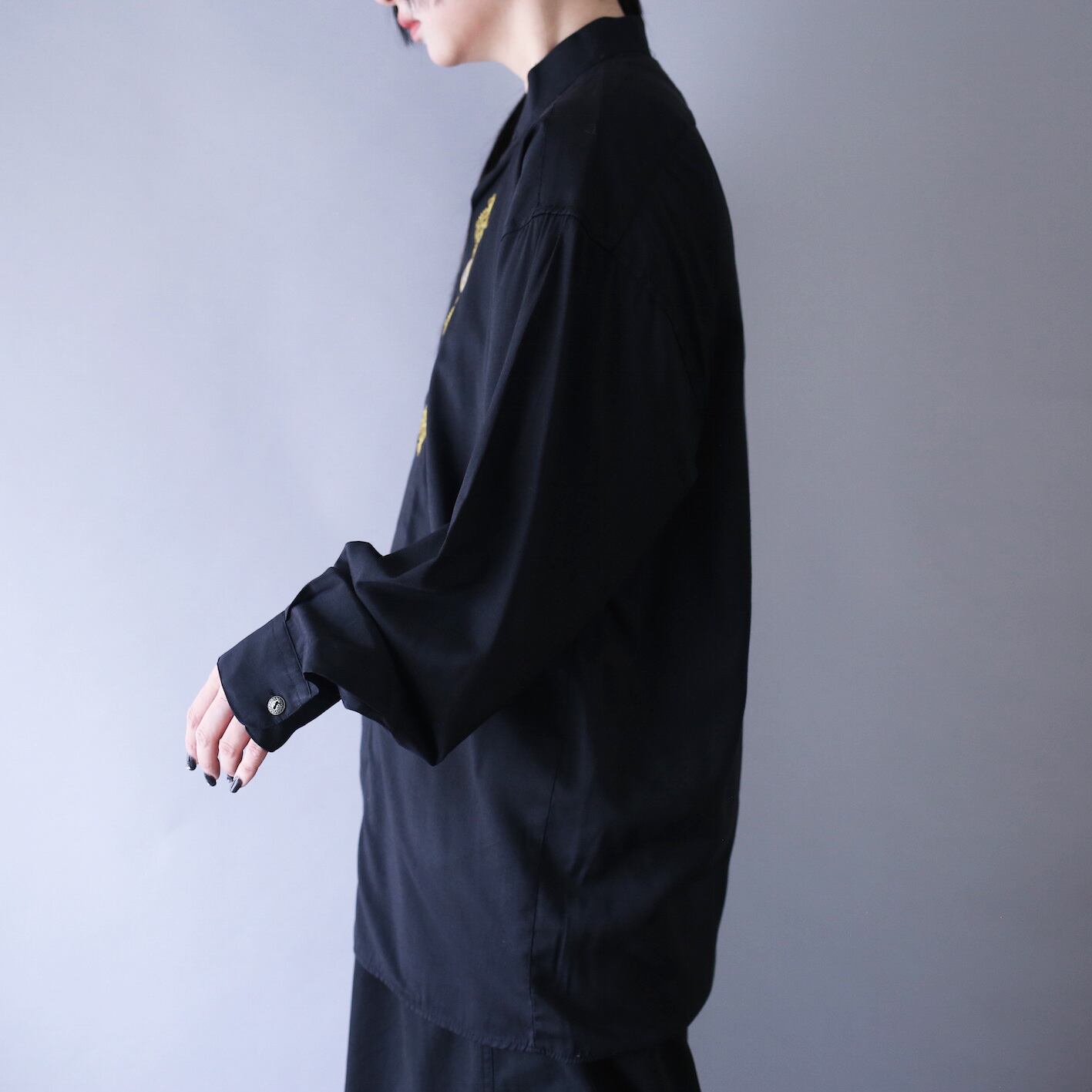 比翼は通常より極太、ブラックベースにパキッとした”黄色×シルバー”の繊細で貴族チックな刺繍が目を惹き、シンプルながらも一点物感をビンビンに感じさせます。