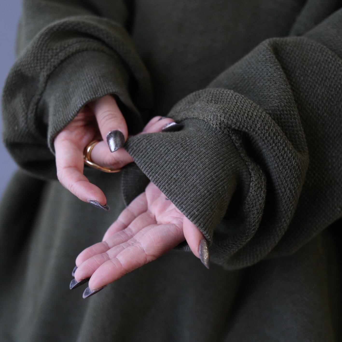 裾と袖口にはそれぞれニットリブが付いているのでシルエットにツボみを与えてくれ、生地のたまり感を演出、コレがオーバーサイズの醍醐味◎