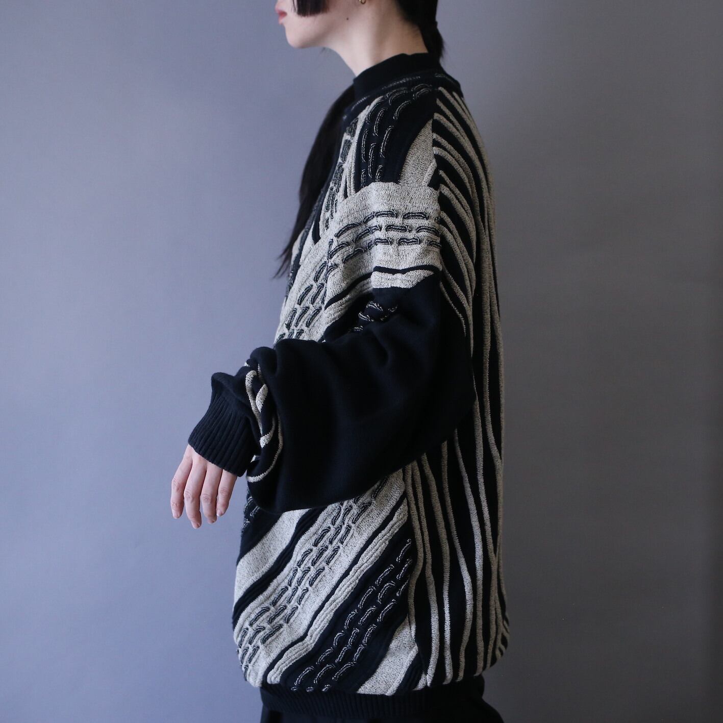 モード映えする3Dニットはなかなか見つかりません、360°全面3Dパターンにヒダモチーフの禍々しい程の凹凸が他との差別化を叶えてくれ、サイズもバカデカと嬉しいディテールてんこ盛りのスペシャル欲張りセットです〜