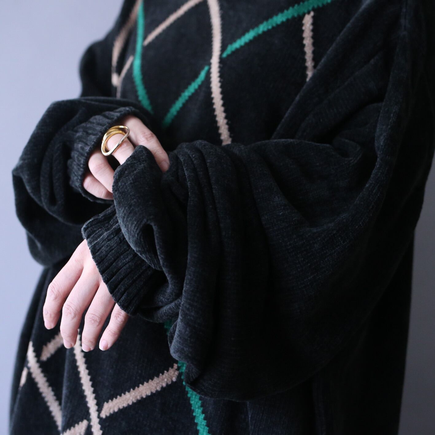 当店十八番のオーバーサイズブランド"KING SIZE"より立体感のあるパイルニットに良配色のクロスデザインをあしらったバカデカスペシャルニットの登場。