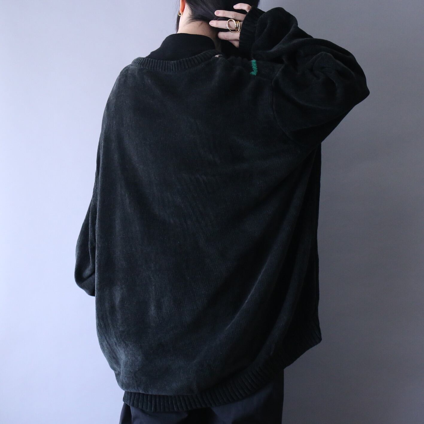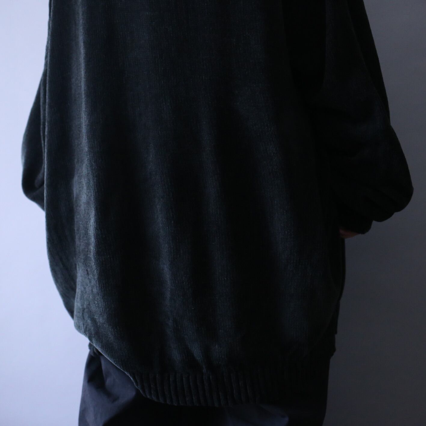 表面に起毛感のあるパイル編みが高級感を加速、ベースのダークグリーンと生地の毛並みが繰り出す濃淡が服に深みを与えてくれます◎