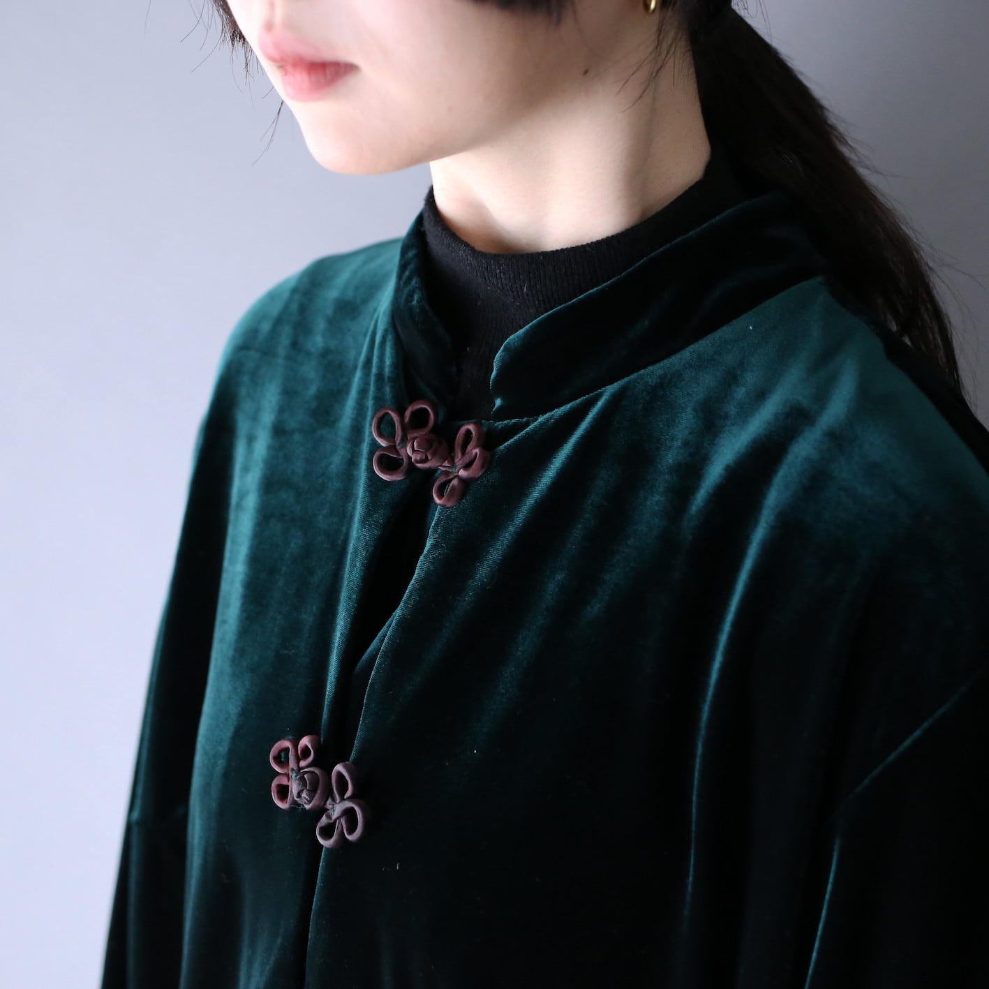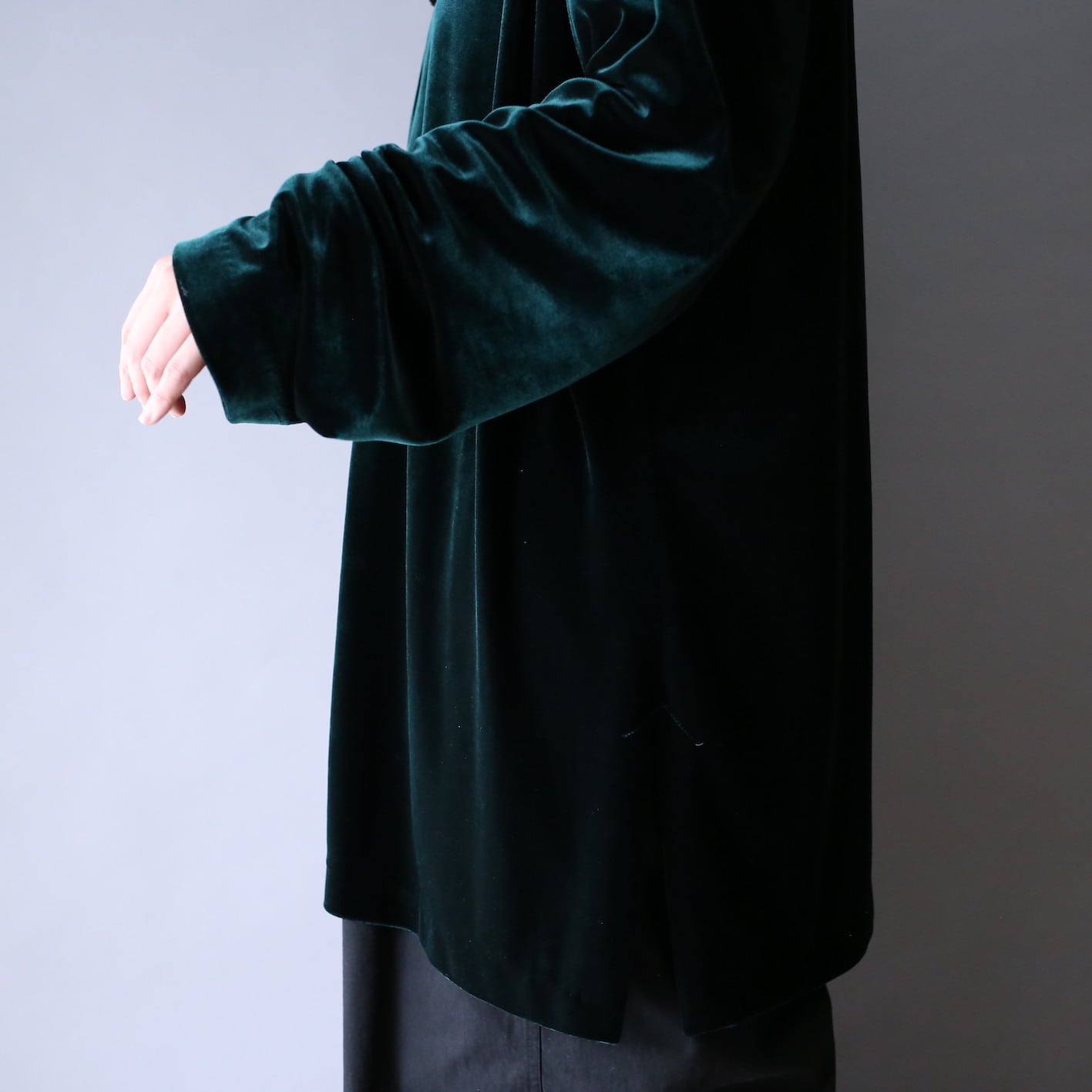 そしてこの服のキメ手となる"ベロア生地"、濃厚で発色の良い”ディープグリーン”と合わさることで妖艶かつラグジュアリーな仕上がりに◎