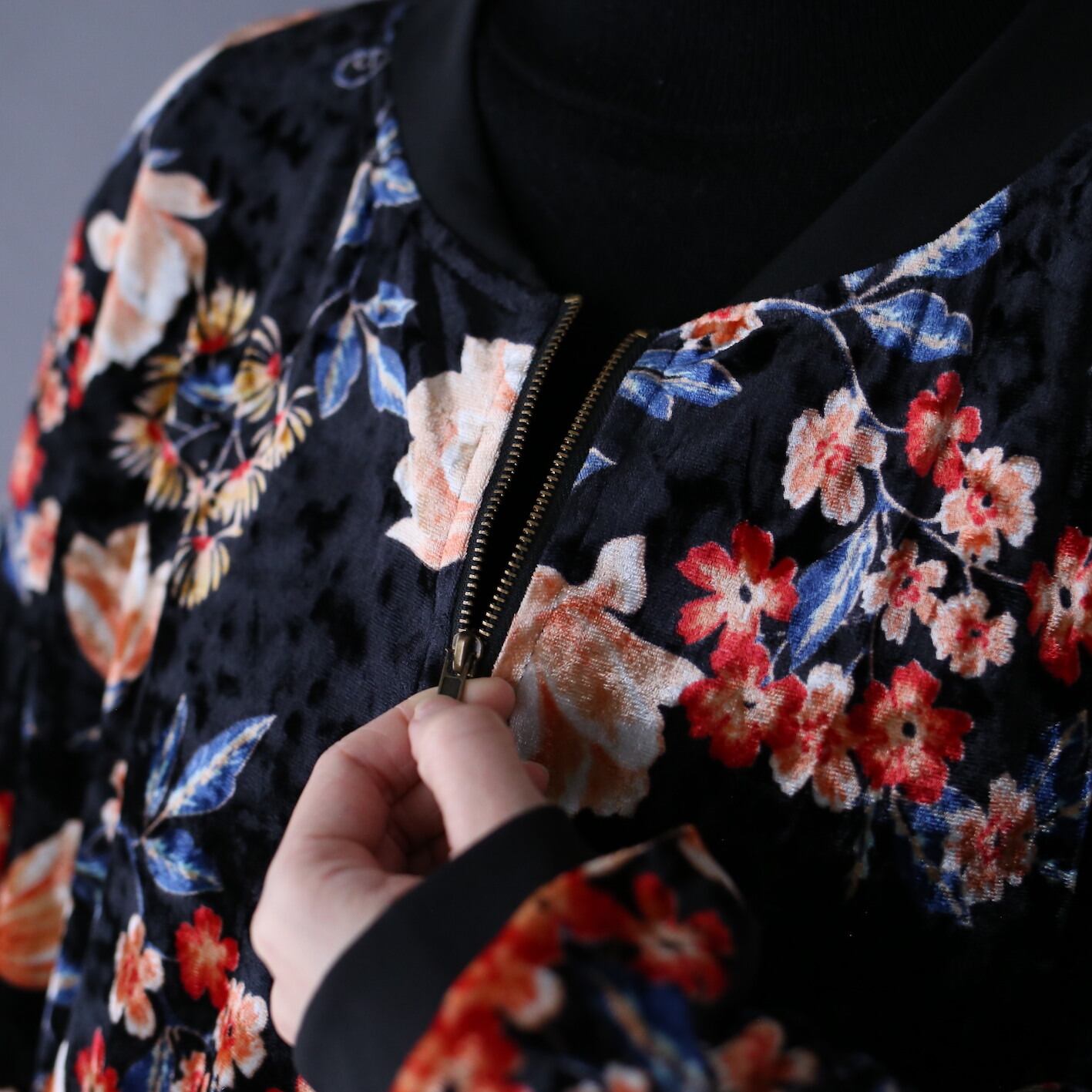 高級感のあるベロア生地に美しい花柄が黒地に映える幻想的な組み合わせ、花の儚さを加速させてくれる良配色◎