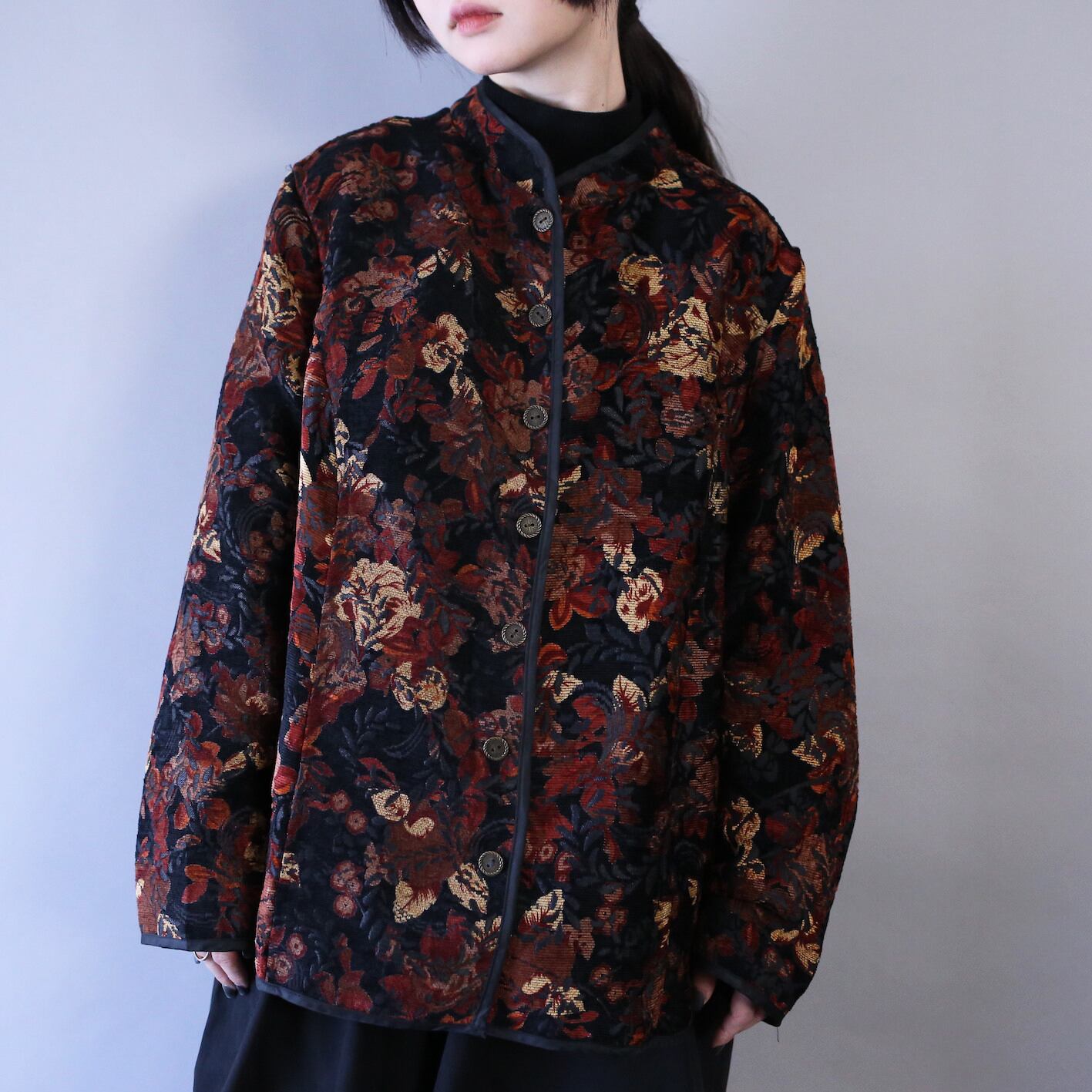 シェニールとジャガードの織りによって生み出された立体的な柄、両A面としてリバーシブル使いのできるスペシャルジャケット。