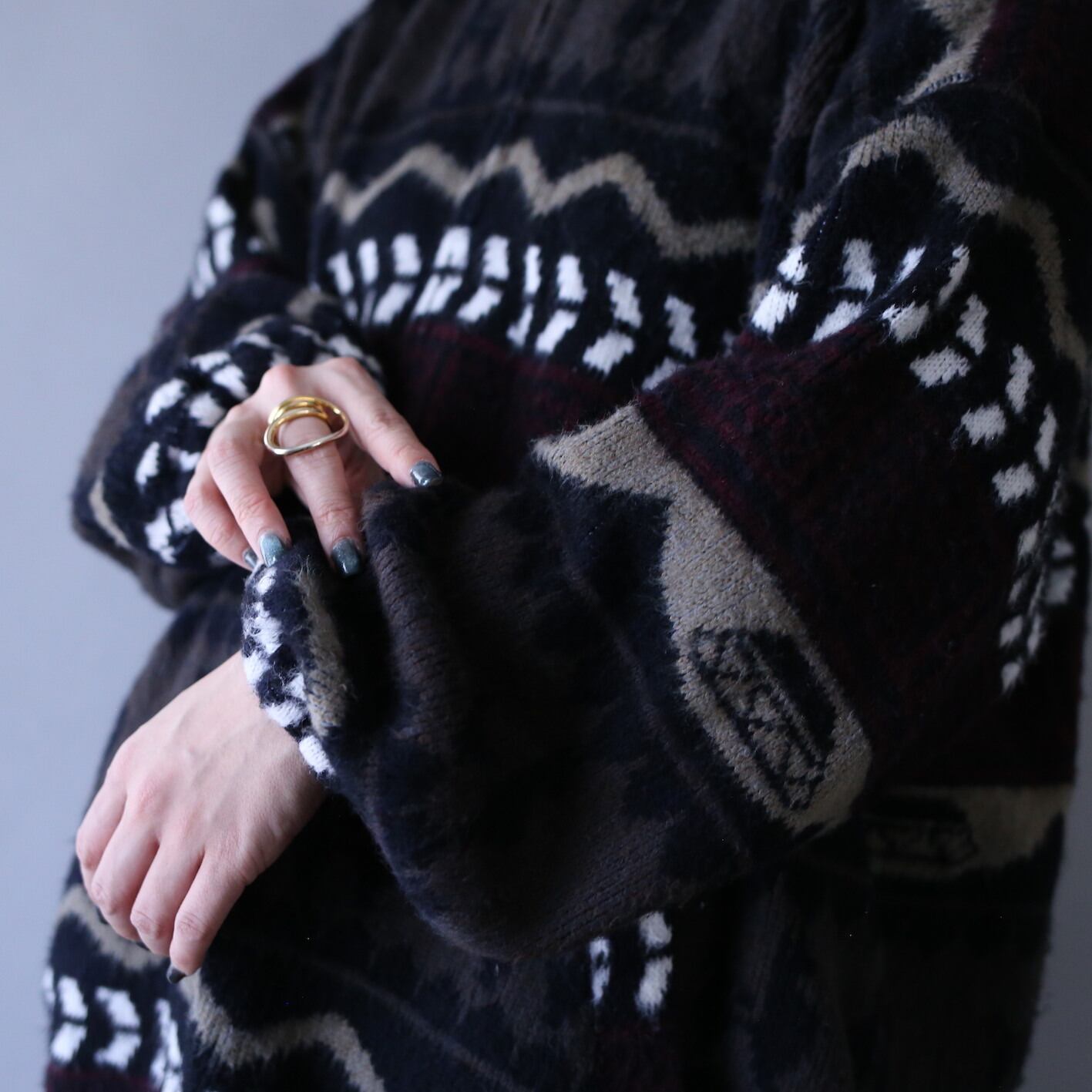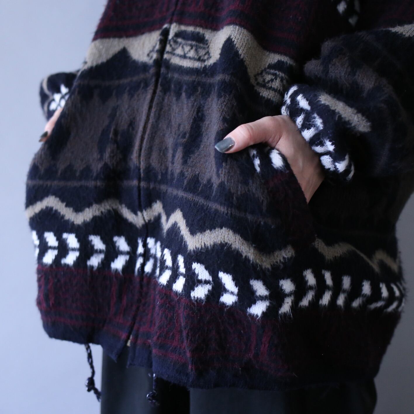 モフモフとしたモヘア生地にノルディックな柄を全体に纏った”エクアドルジップアップパーカー”入荷しました。