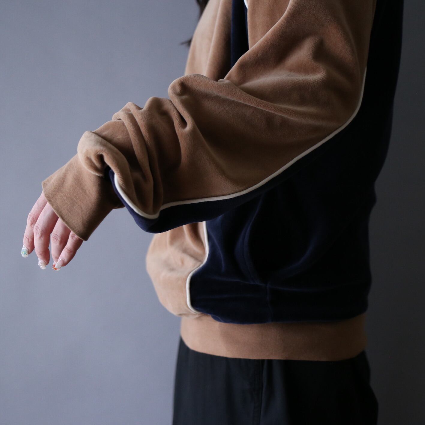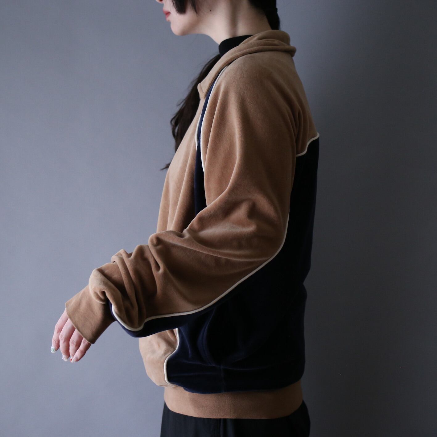 ベロア生地のジャケットの中でもワンカラーではなく”バイカラー”となると球数がグッと減る激レアピース。