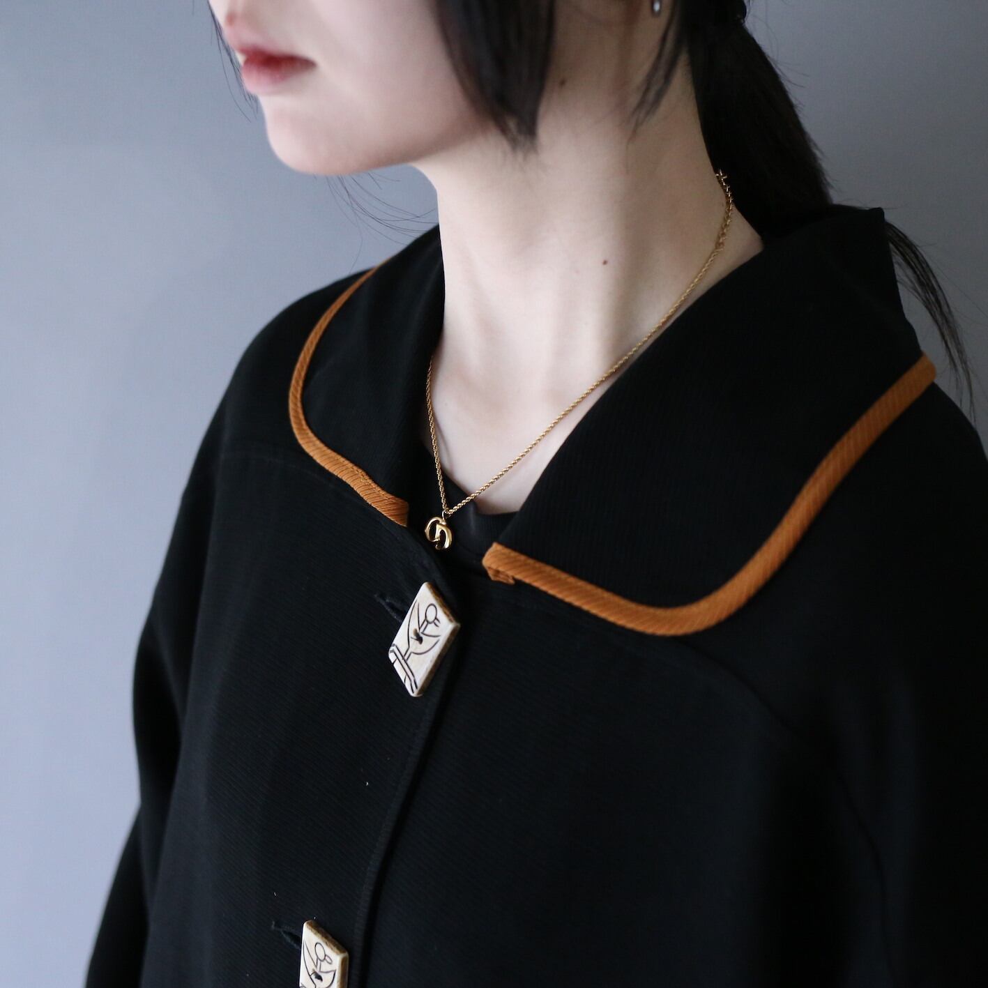 ベースはブラック、襟やポケットをオレンジのパイピングで縁取り古着の醍醐味である”一点物”をグイッと底上げ◎