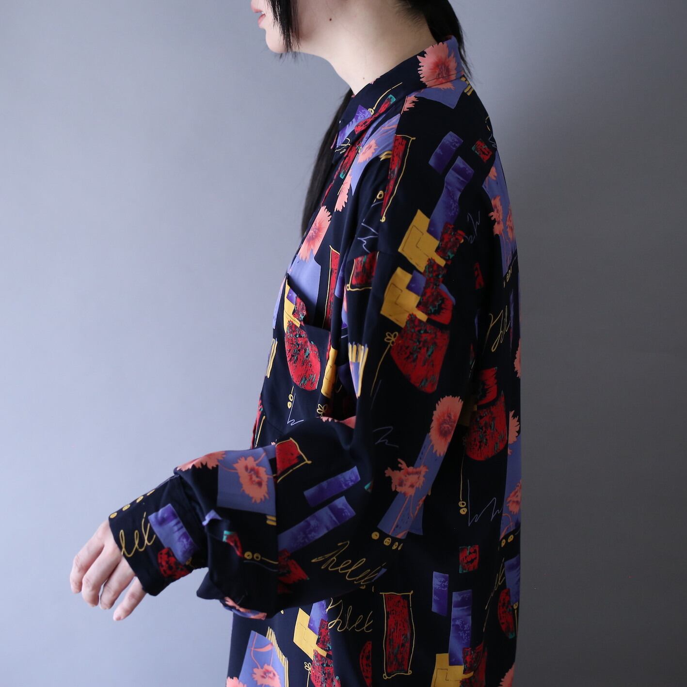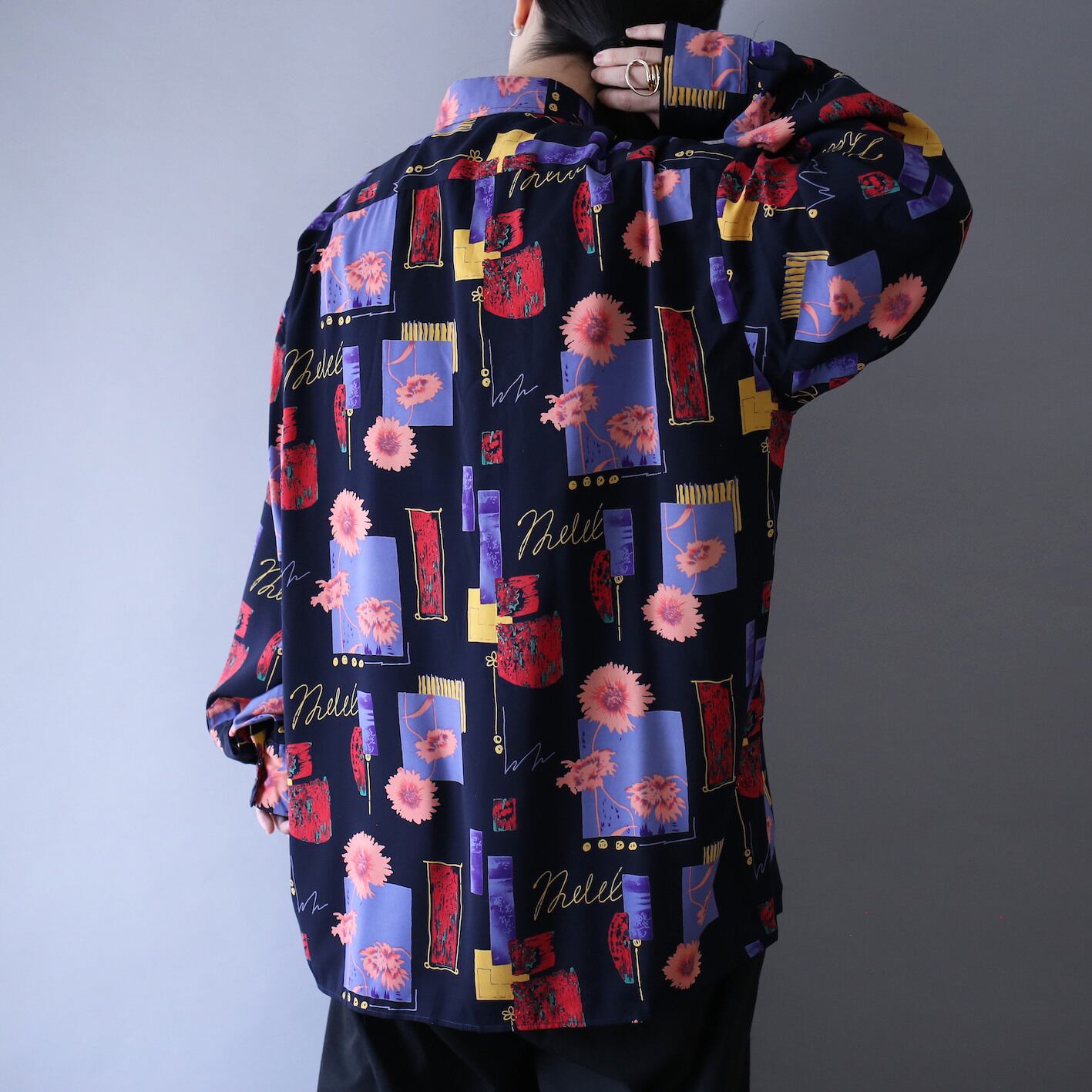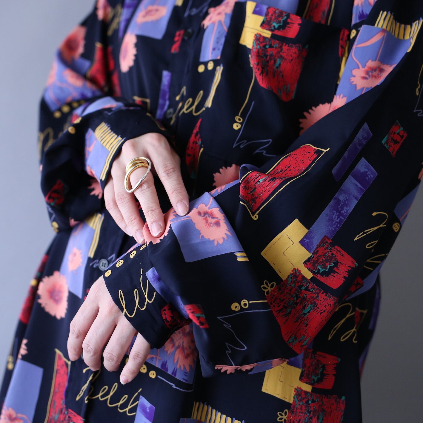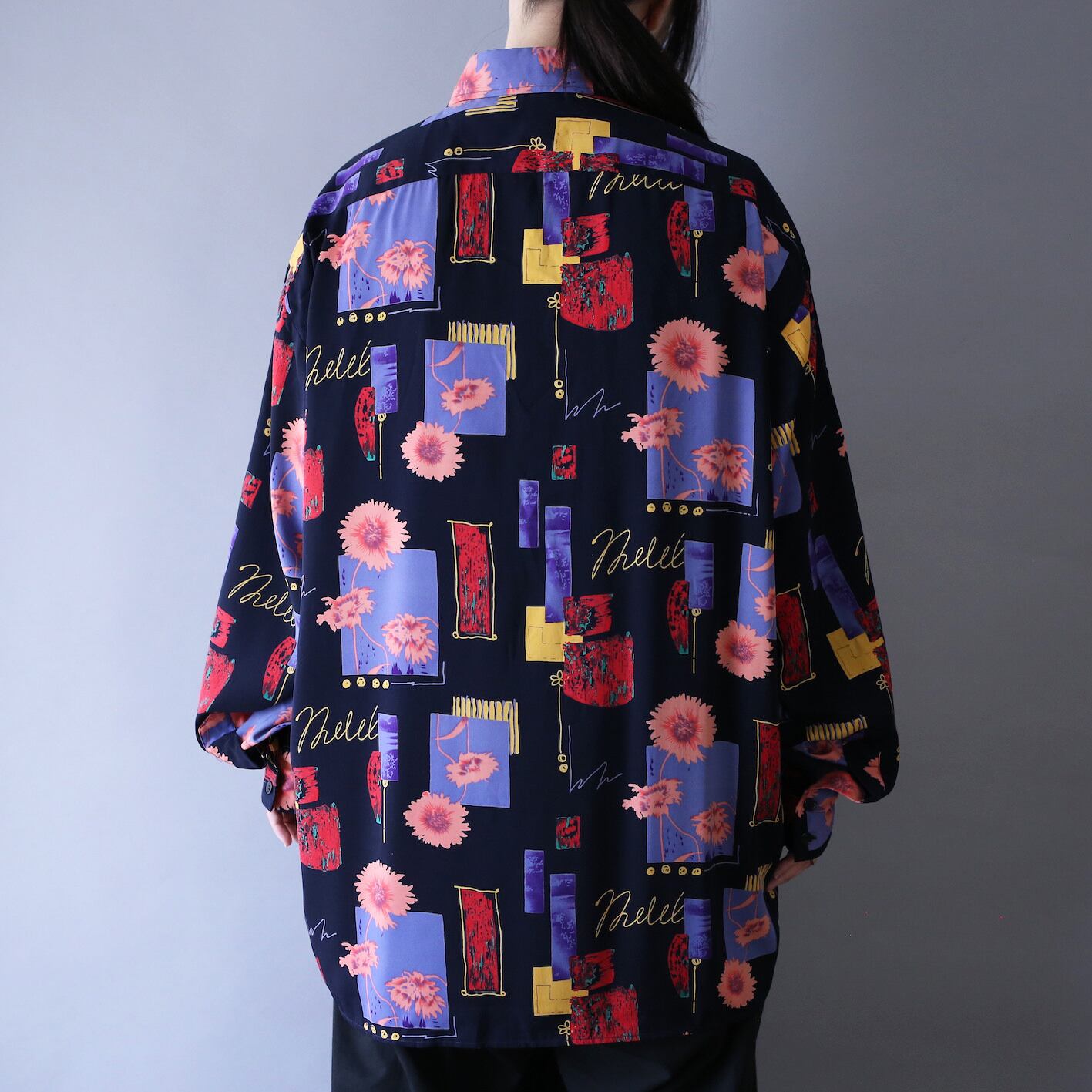 総柄ですがライトな色味とハリ感のある素材の合わせが非常に良いので重くなりすぎず意外と合わせやすいです、良い意味で古着らしくなく1枚で見応えを作ってくれる嗜好の逸品です〜